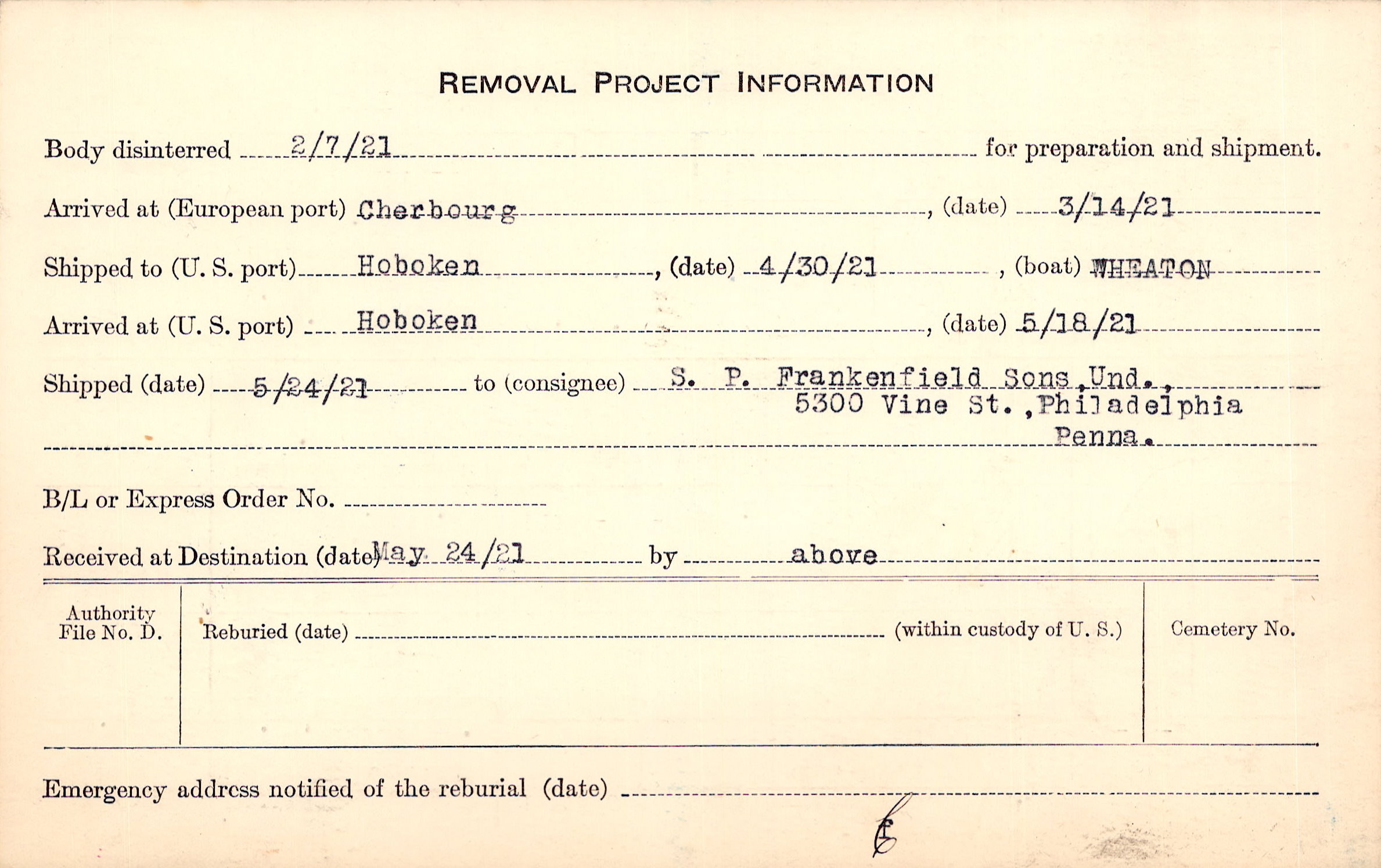 to S. P. Frankenfield Sons, Und., 5300 Vine St. ,Philadelphia Penna.