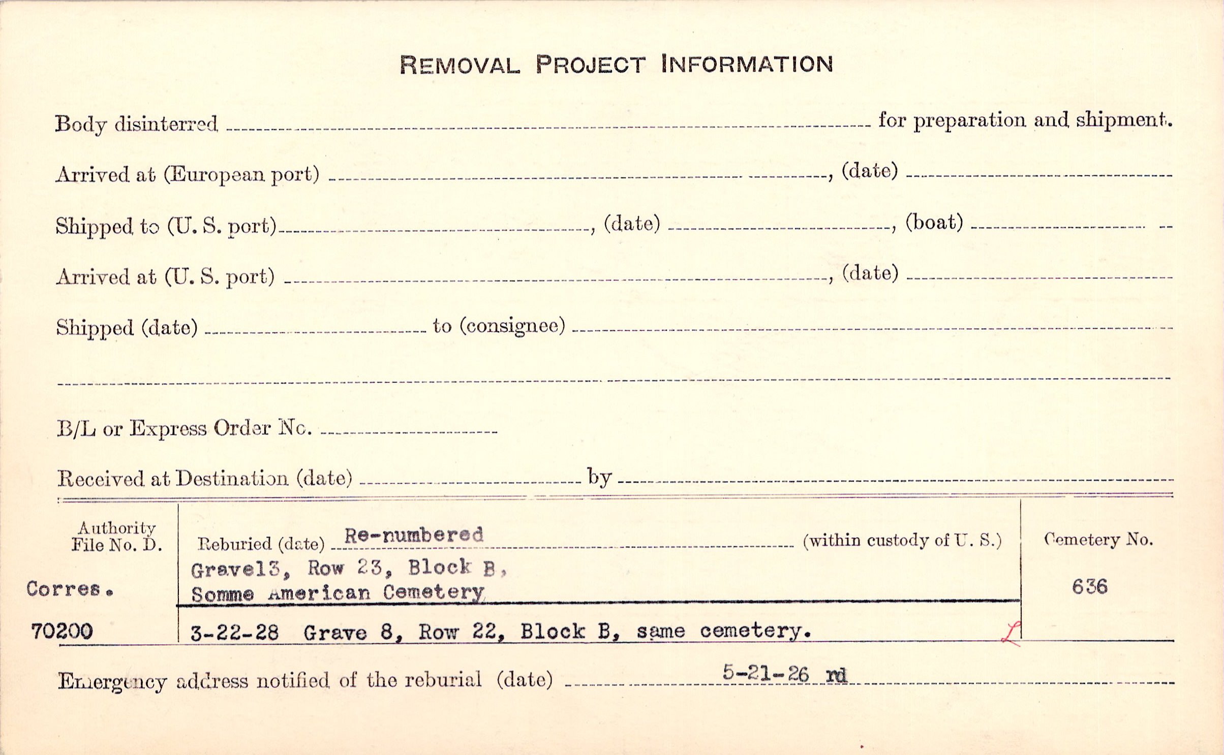 Grave # 26; Plot B; Row #1; Guillemont Farm Mil. Cty., Bony, Aisne.