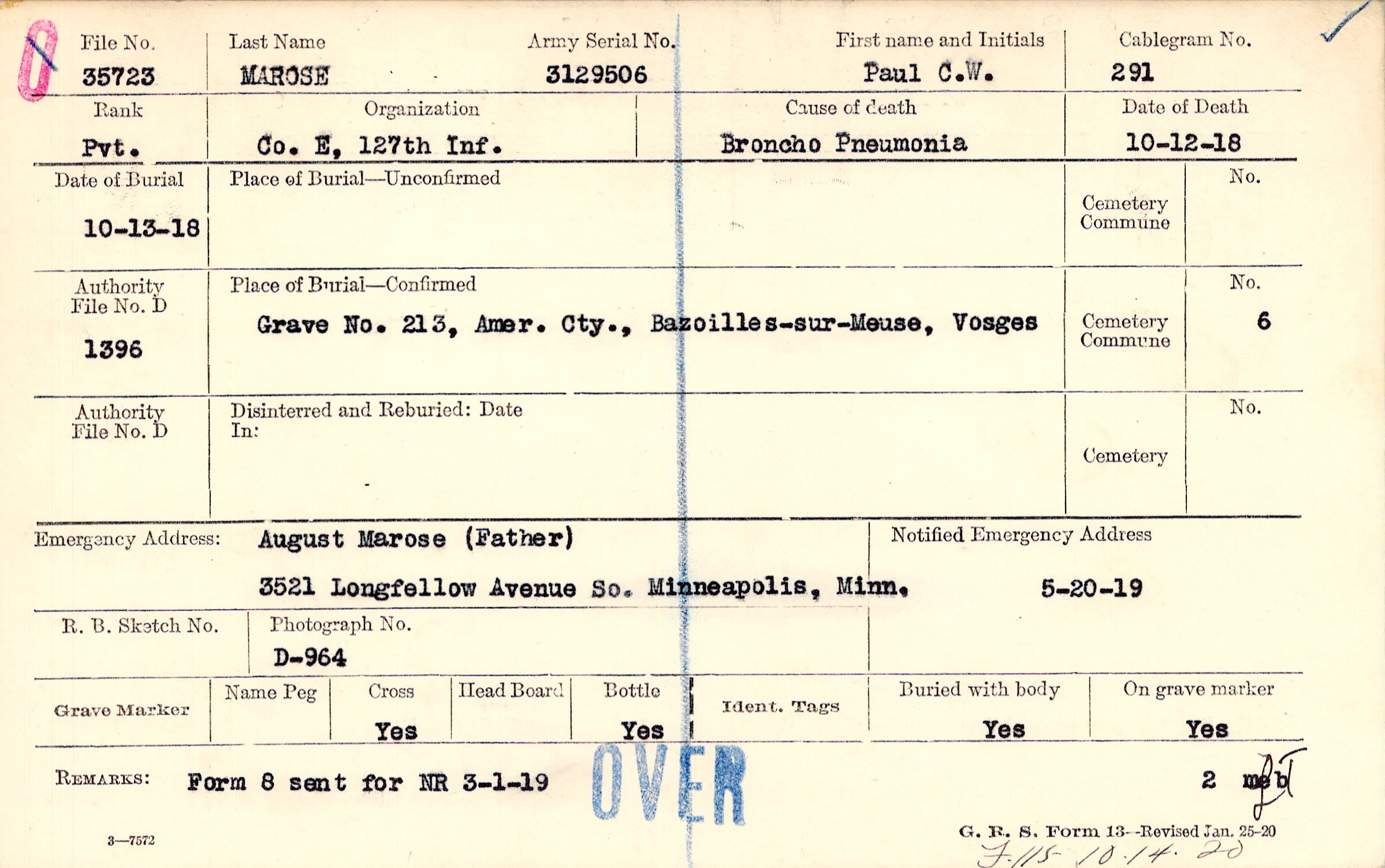 August Marose (Father), 3521 Longfellow Avenue So. Minneapolis, Minn.