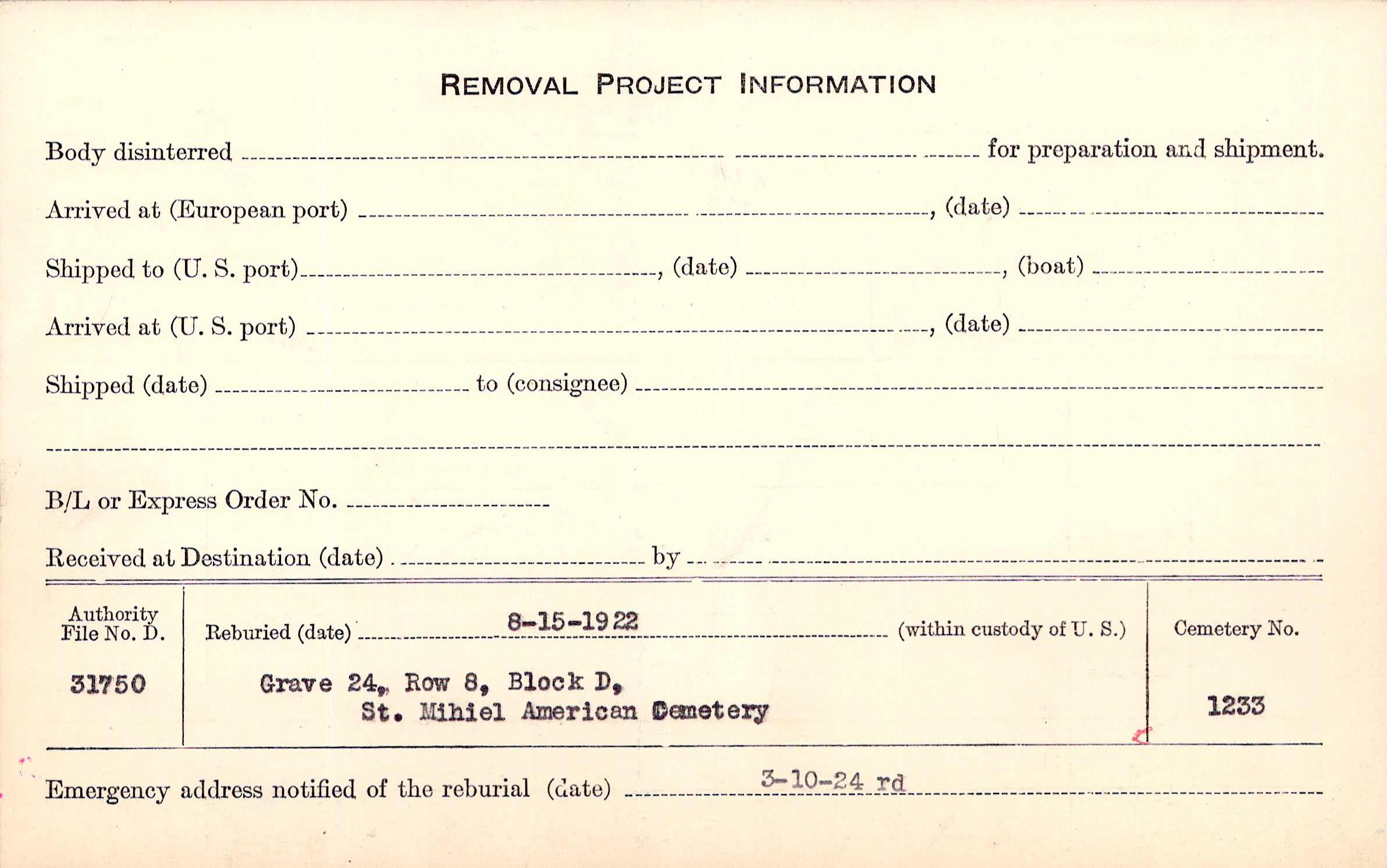 Grave 139, Section 8, Plot 3, St. Mihiel American Cemetery, Thiaucourt, Meurthe-et-Moselle