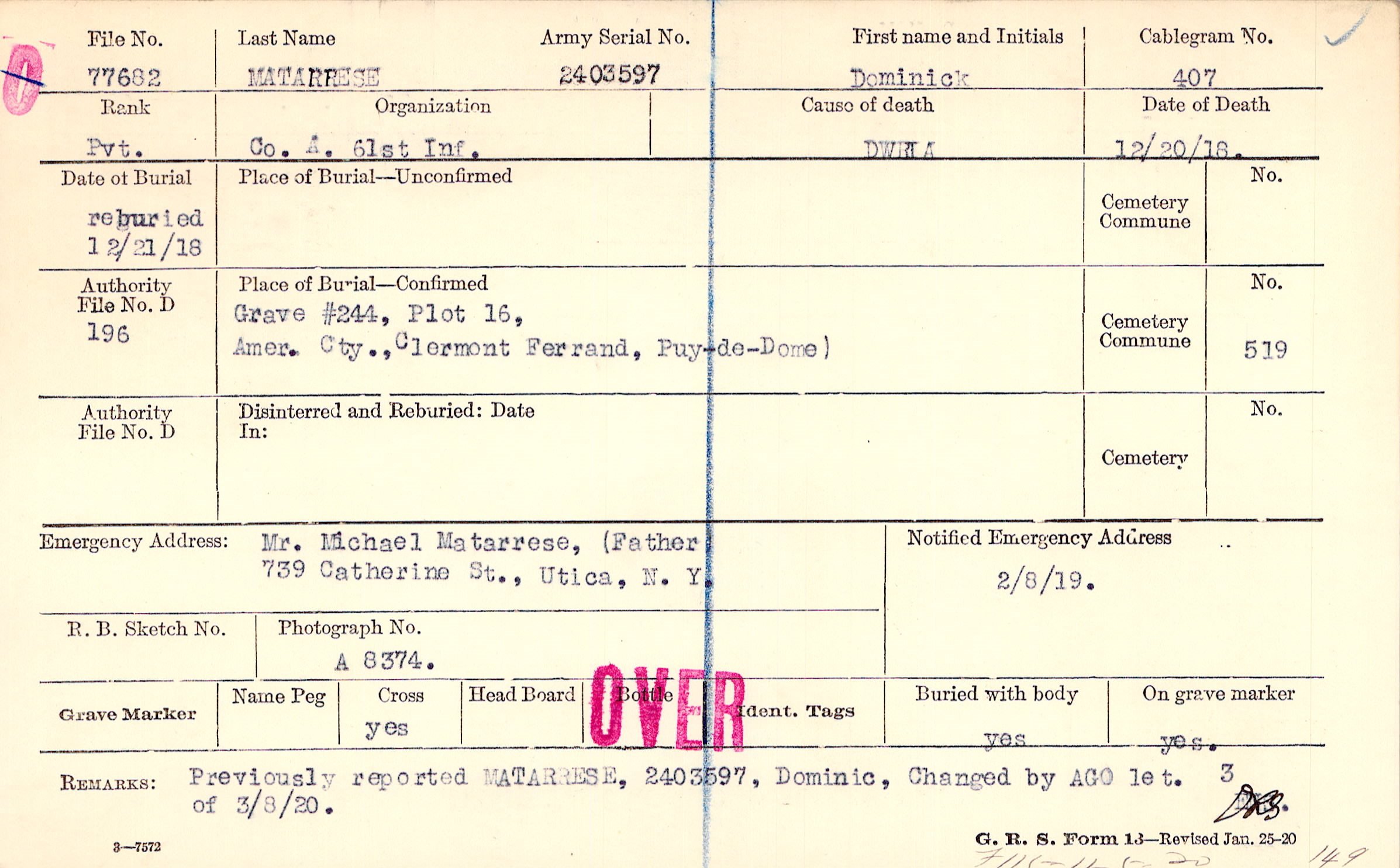 Grave #244, Plot 16, Amer. Cty., Clermont Ferrand, Puy-de-Dome