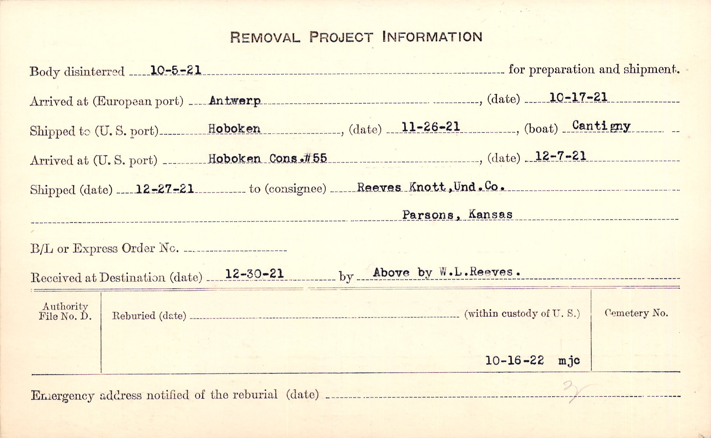 to Reeves Knott, Und. Co., Parsons, Kansas