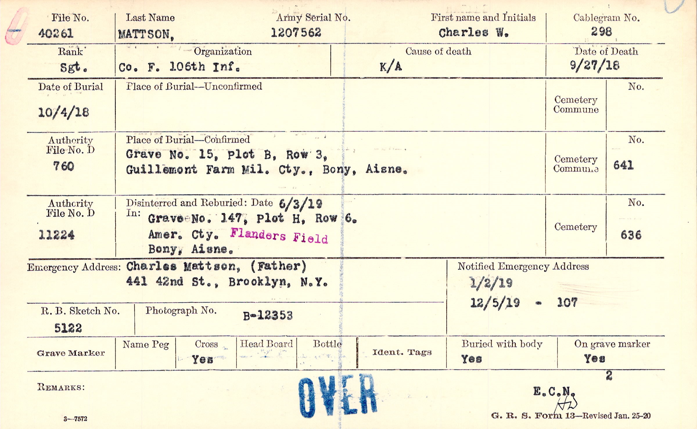 Charles Mattson, (Father), 441 42nd St., Brooklyn, N.Y.