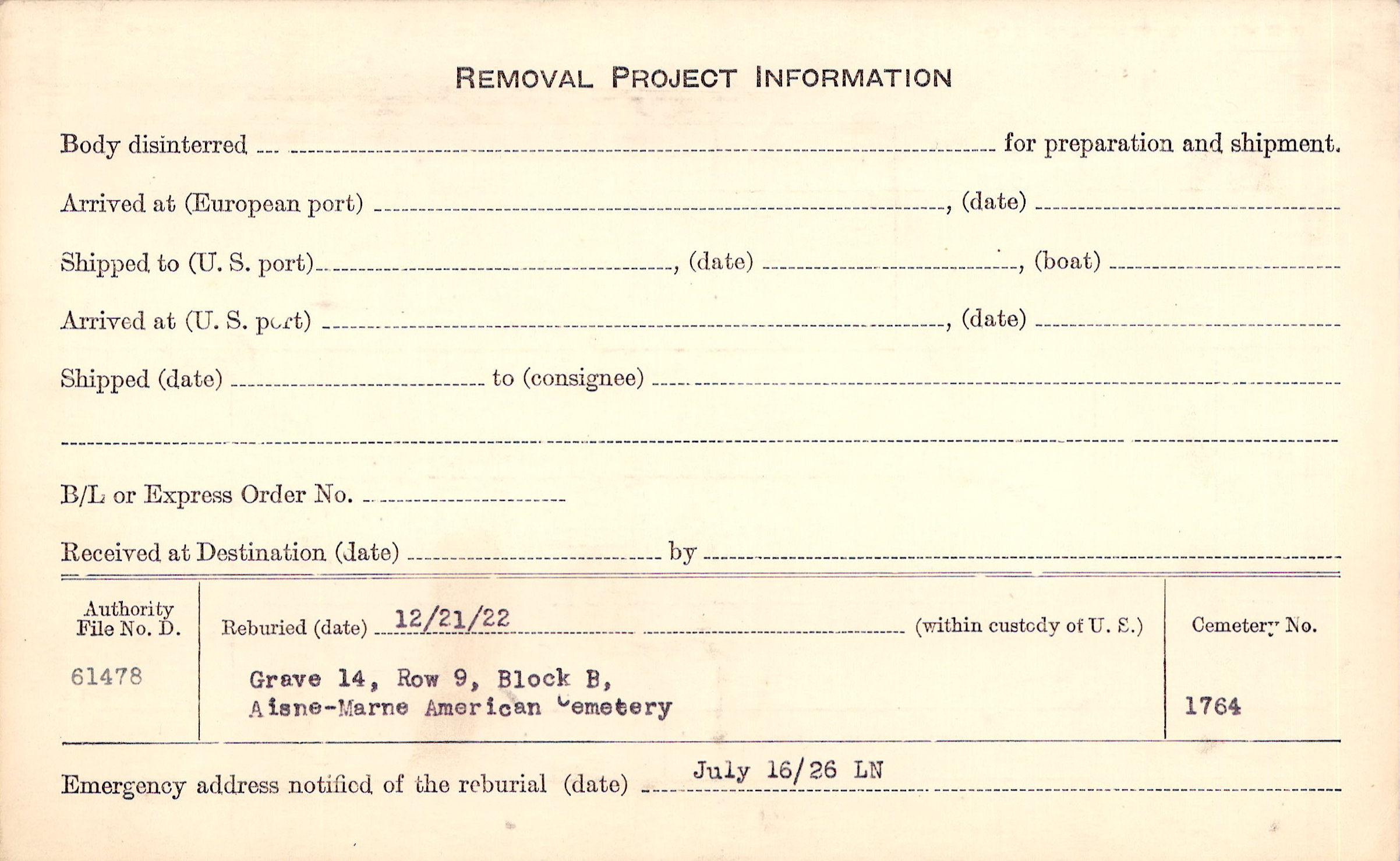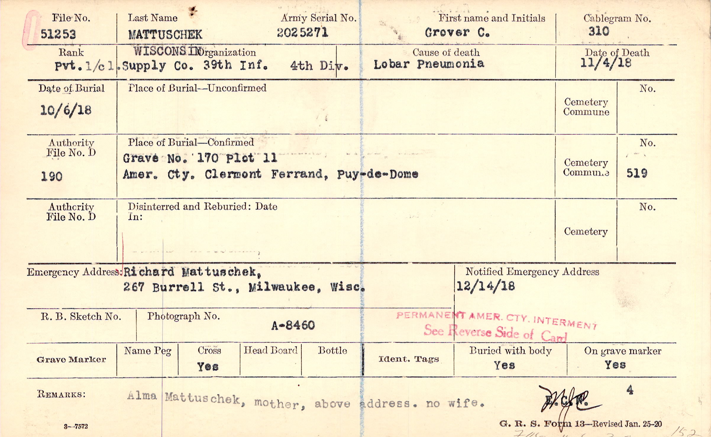Grave 170, Plot 11, Amer. Cty., Clermont Ferrand, Puy-de-Dome