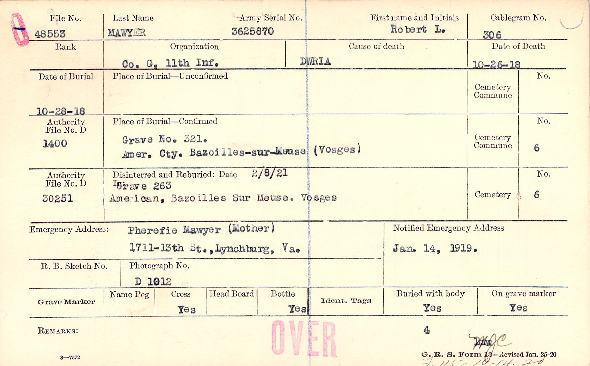 Pherefie Mawyer (Mother), 1711-13th St., Lynchburg, Va.