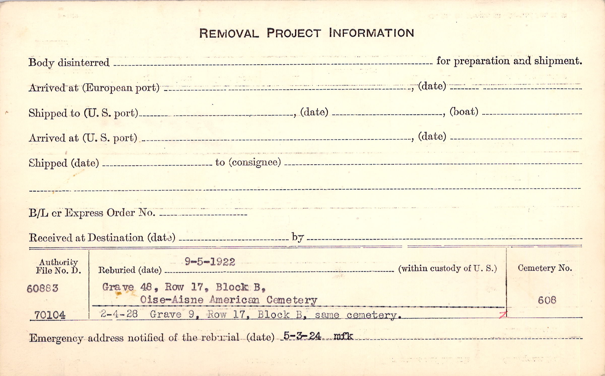 Prior Burial in Foreign Cemetery |