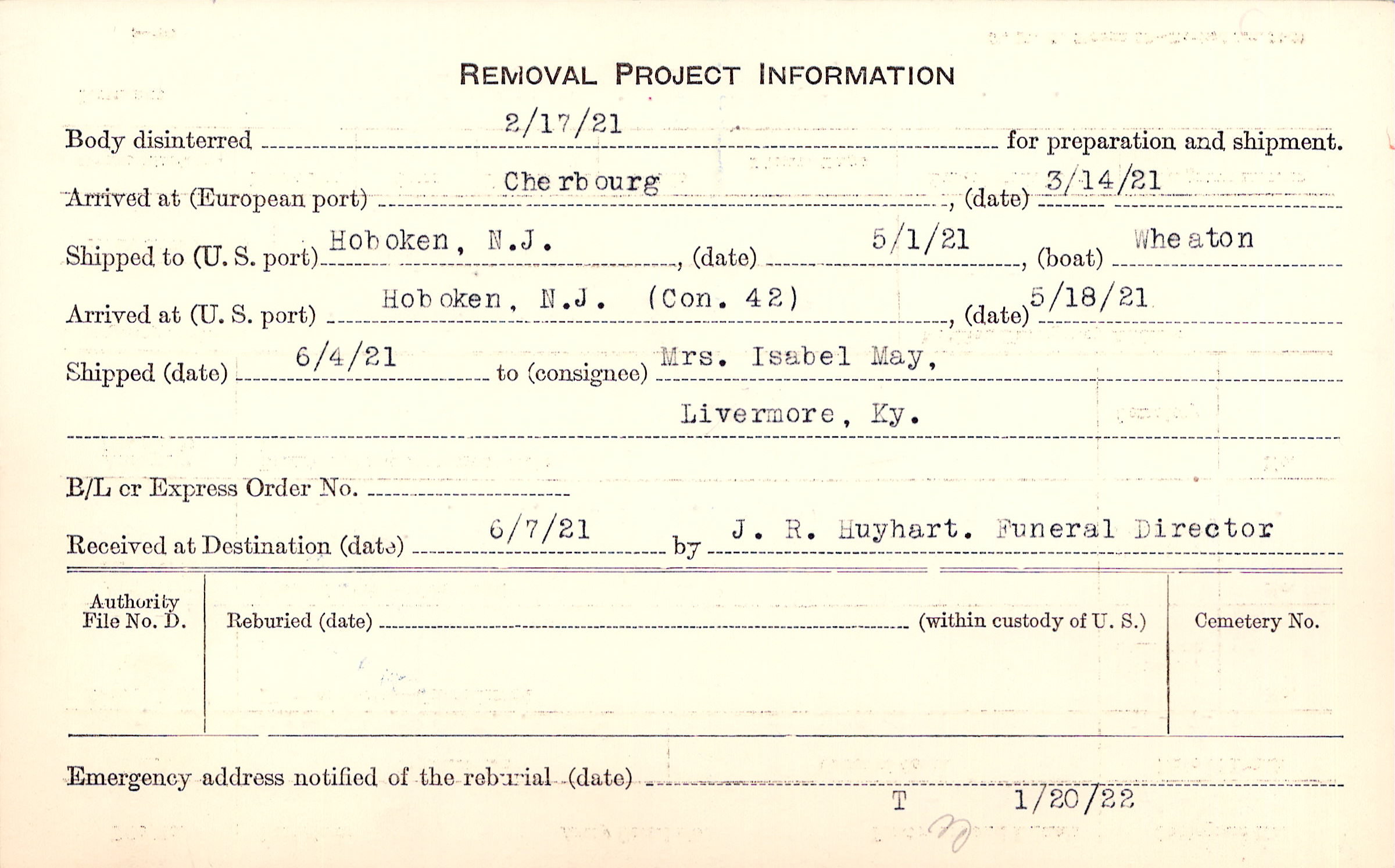 Mrs. Isabell May, (mother), Livermore, Ky.