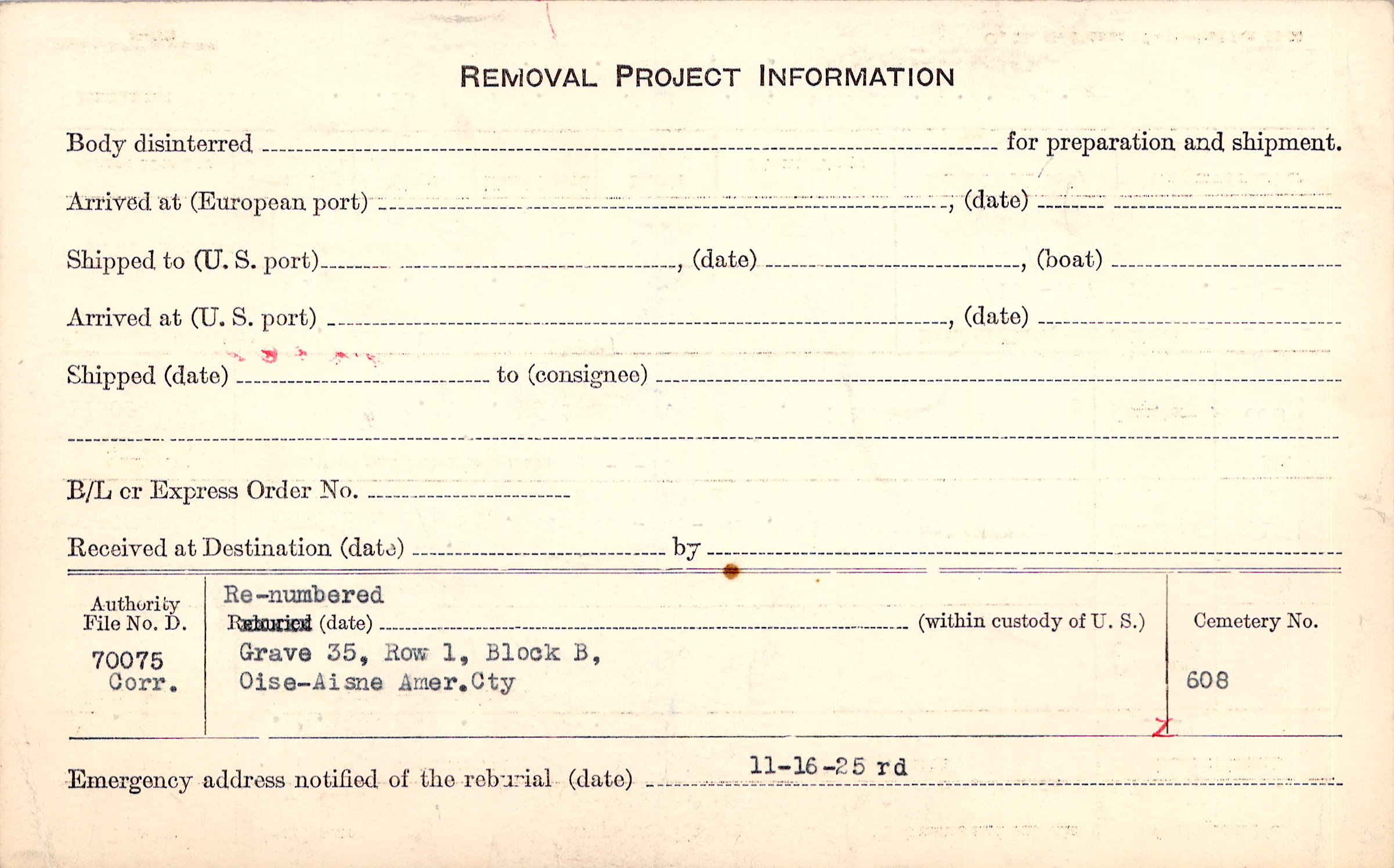 Grave 23, American B/A Cty., Villers-sur-Fere, Aisne