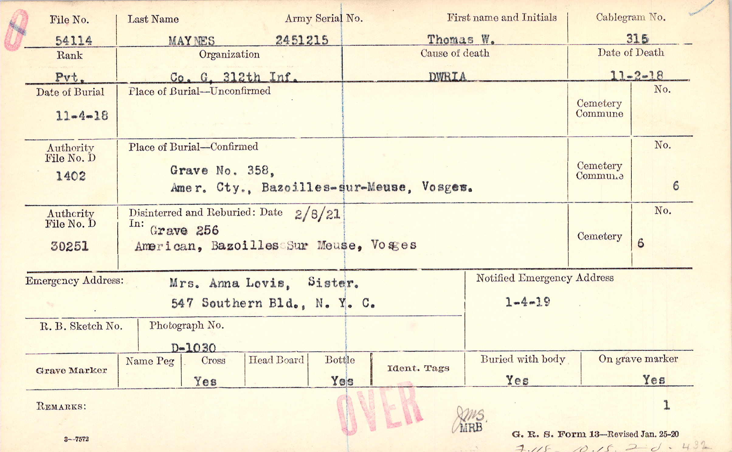 Grave 256, American Cemetery, Bazoilles, Vosges