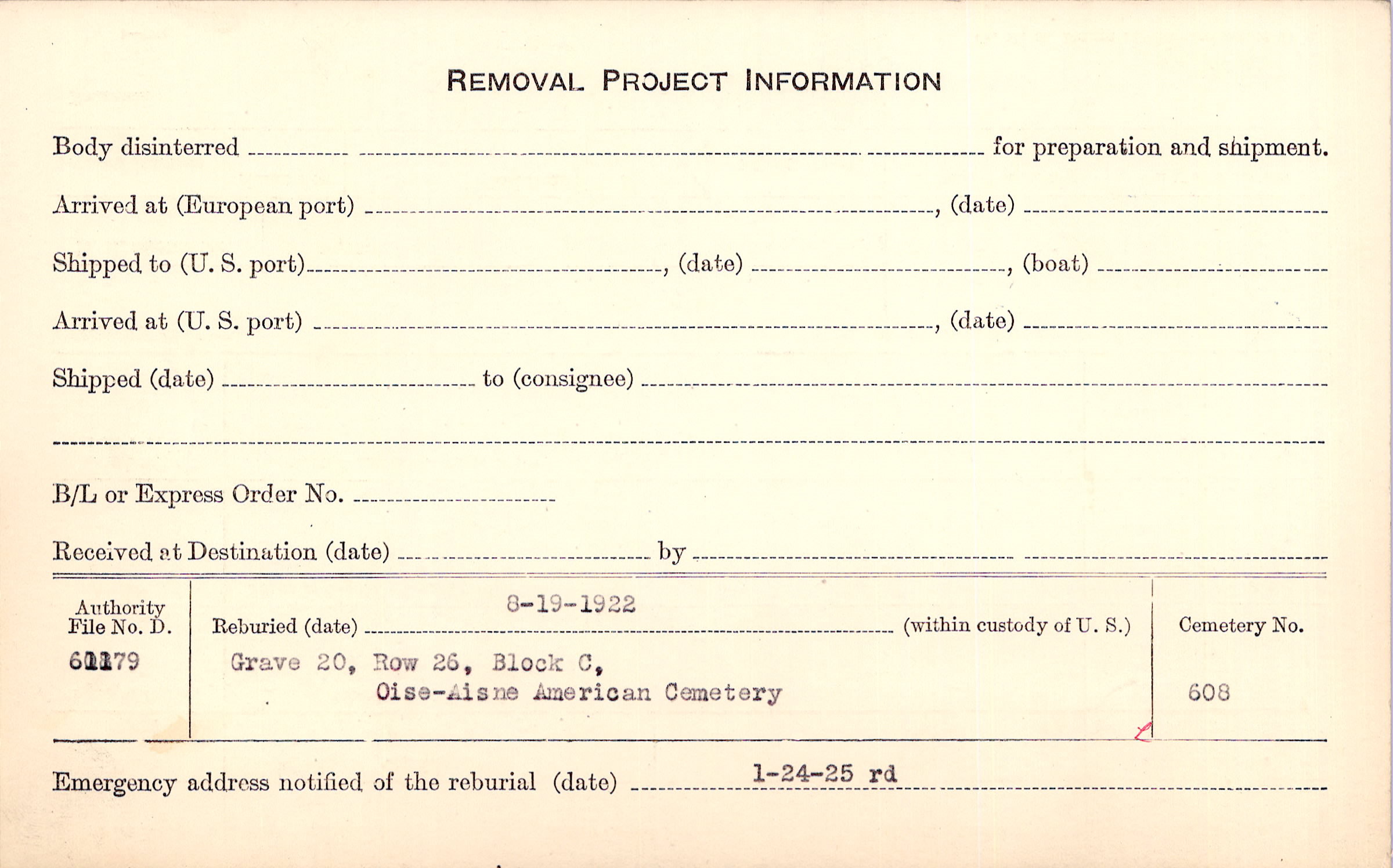 | Permanent Burial in Foreign Cemetery |