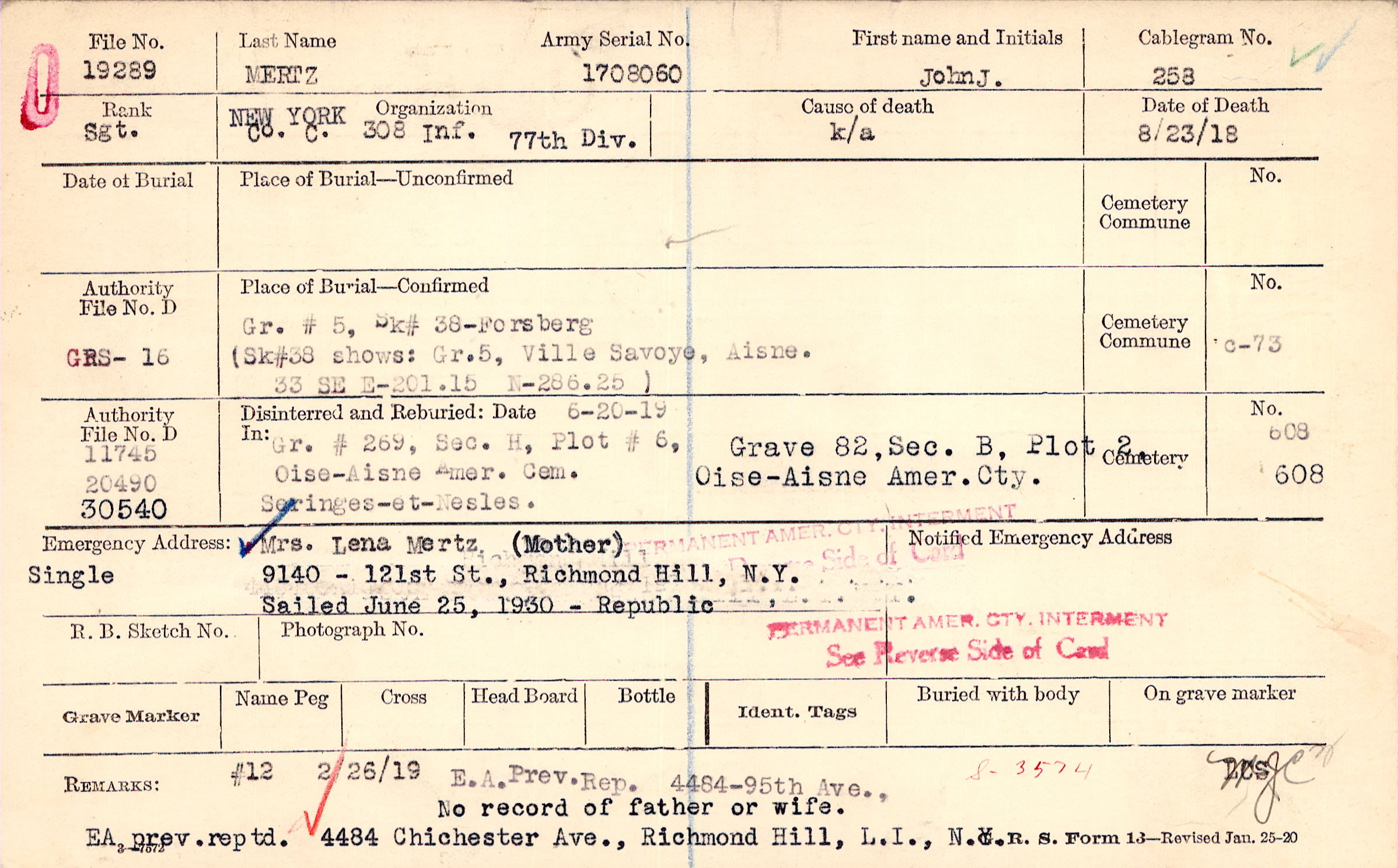 Mrs. Lena Mertz (Mother), 9140 - 121st St., Richmond Hill, N.Y., Single Sailed June 25, 1930 - Republic No record of father or wife.