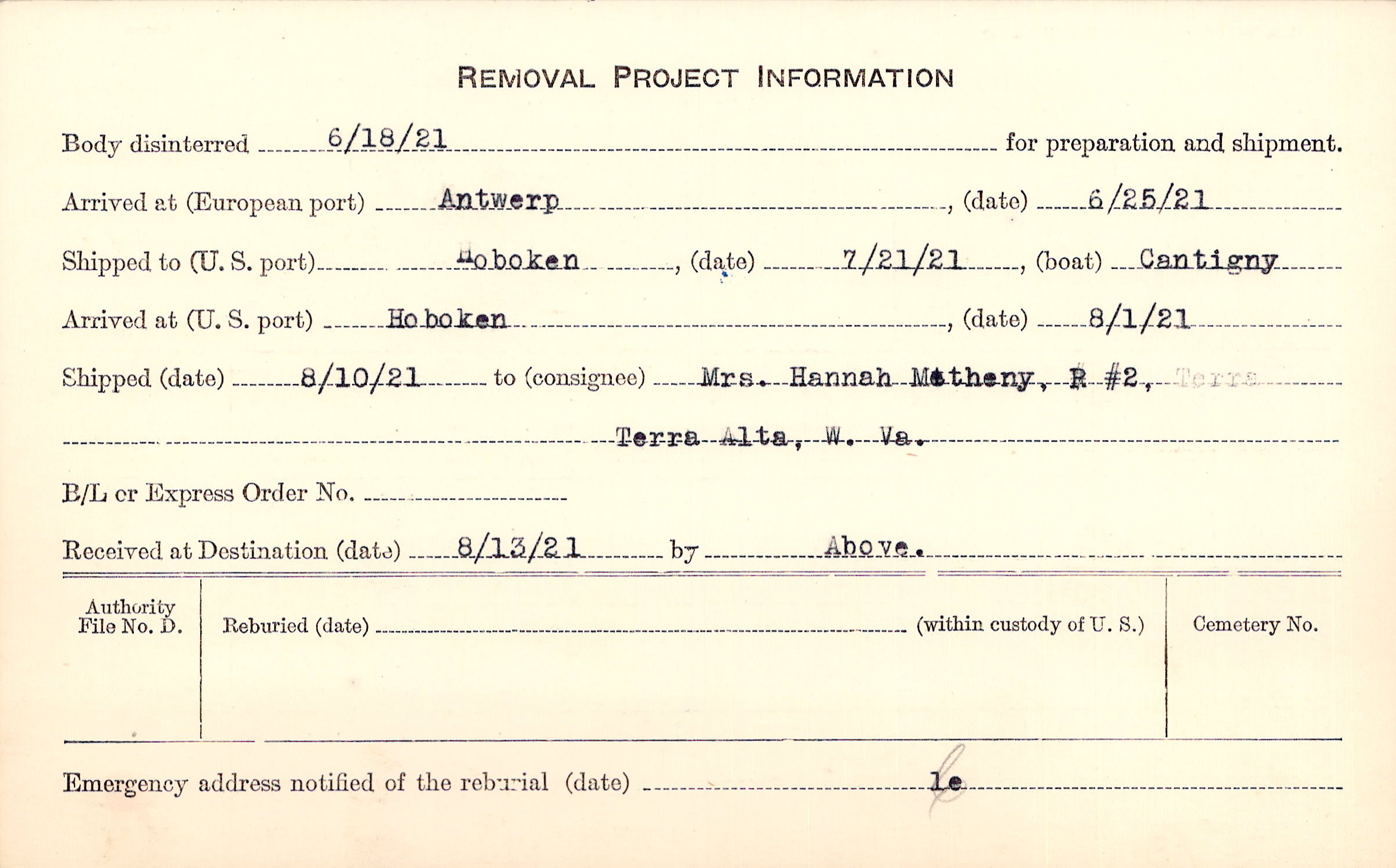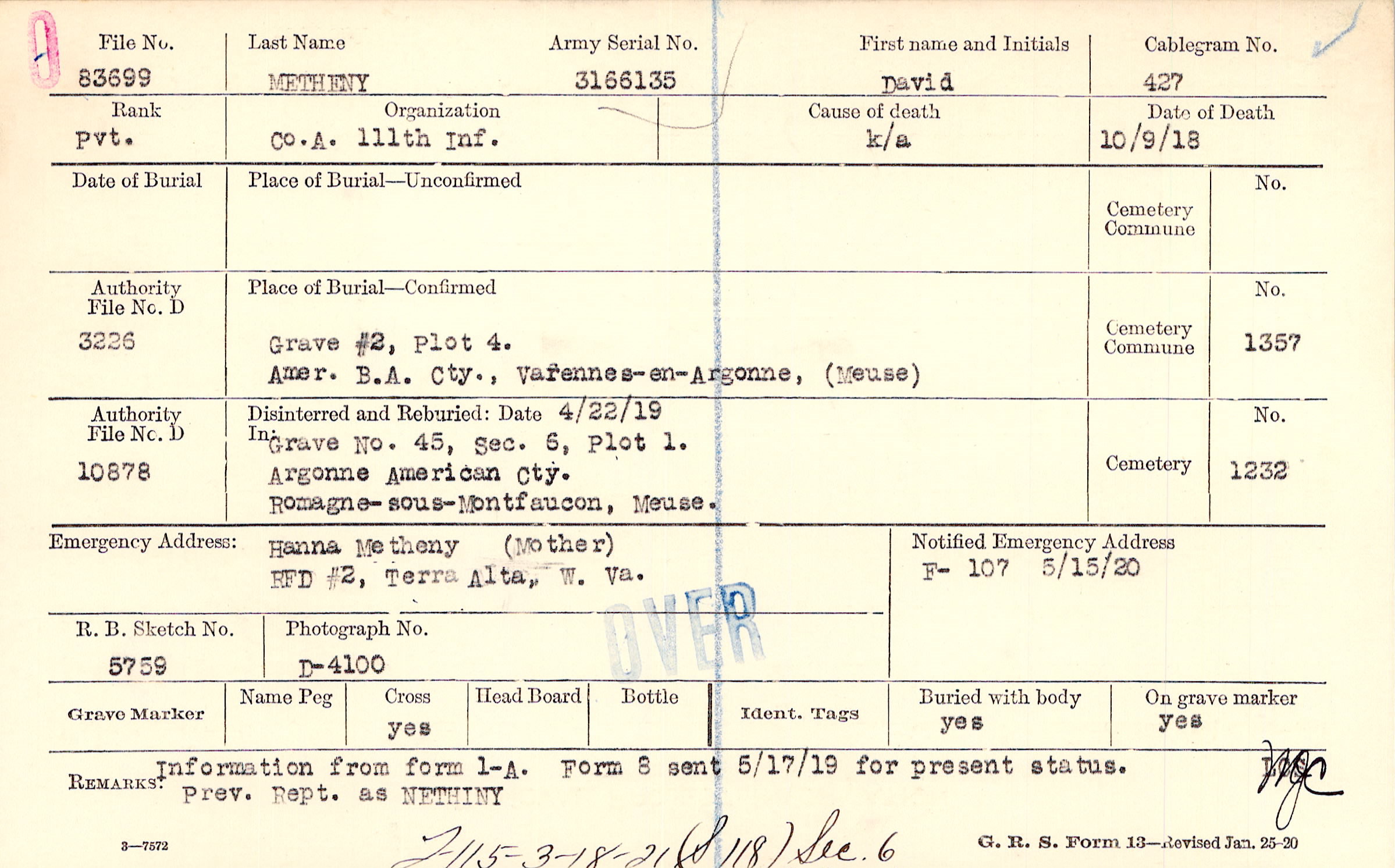 Hanna Metheny (Mother), RFD #2, Terra Alta, W. Va.