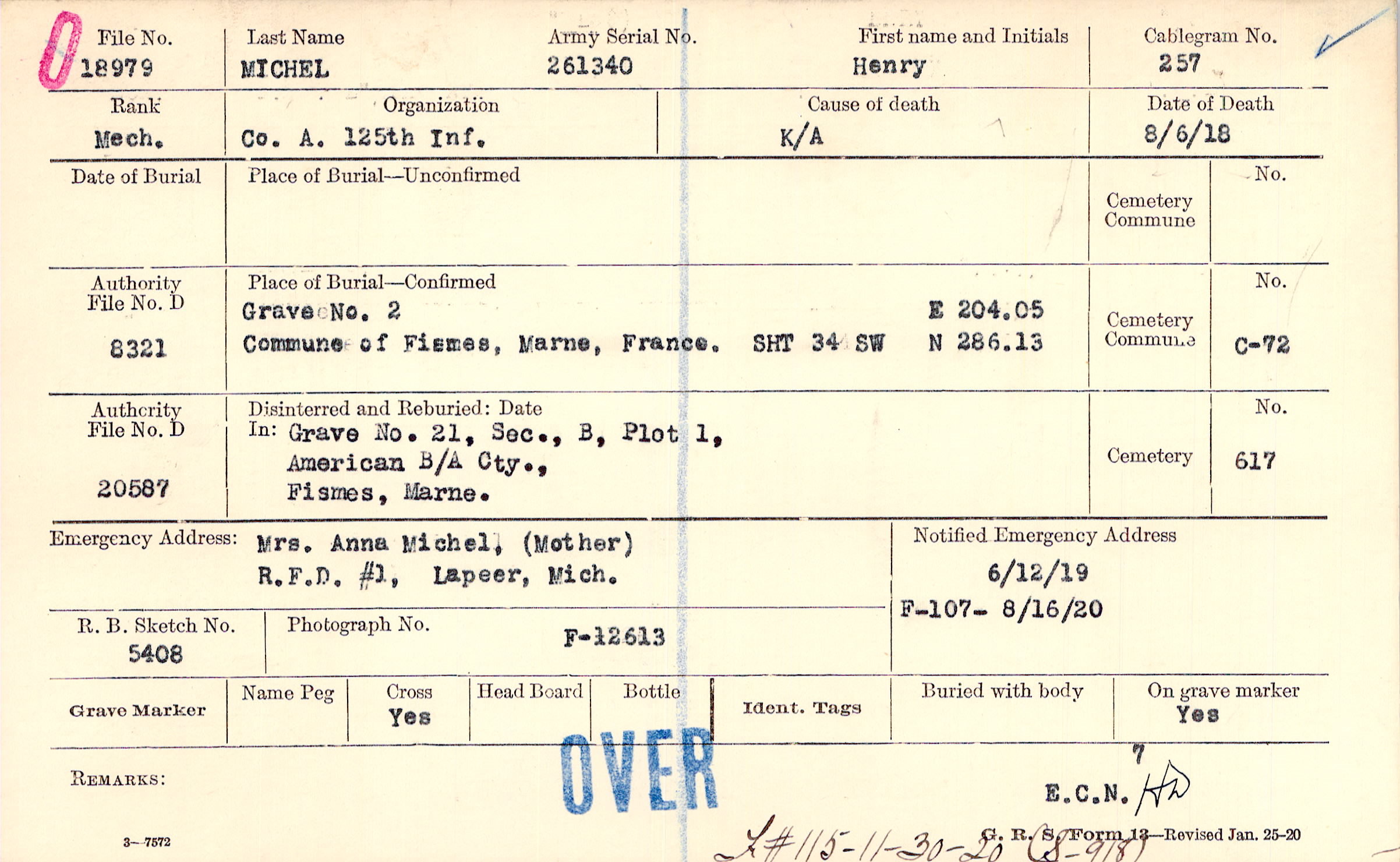 Mrs. Anna Michel, (Mother), R.F.D. #1, Lapeer, Mich.