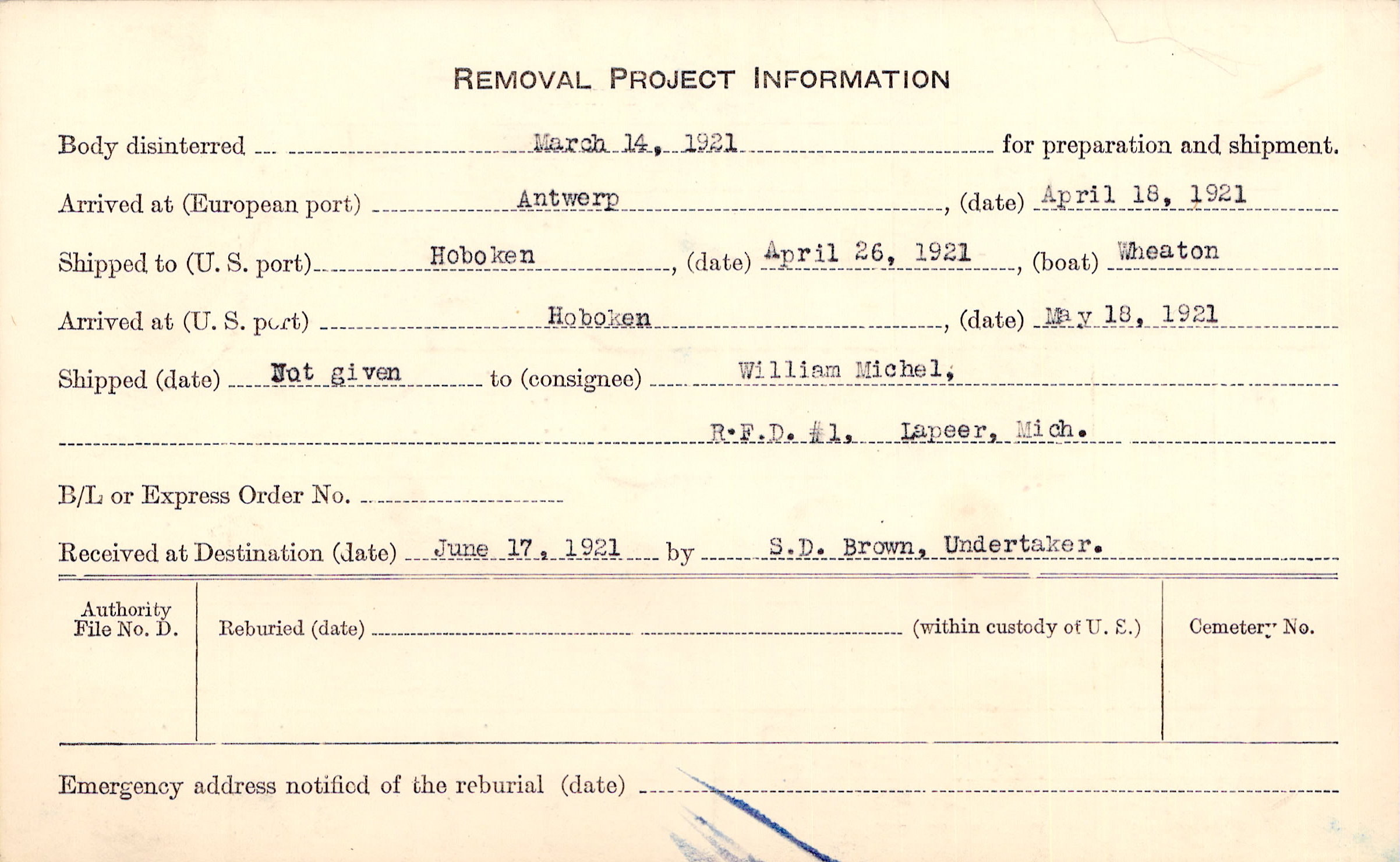 to William Michel, R.F.D. #1, Lapeer, Mich.