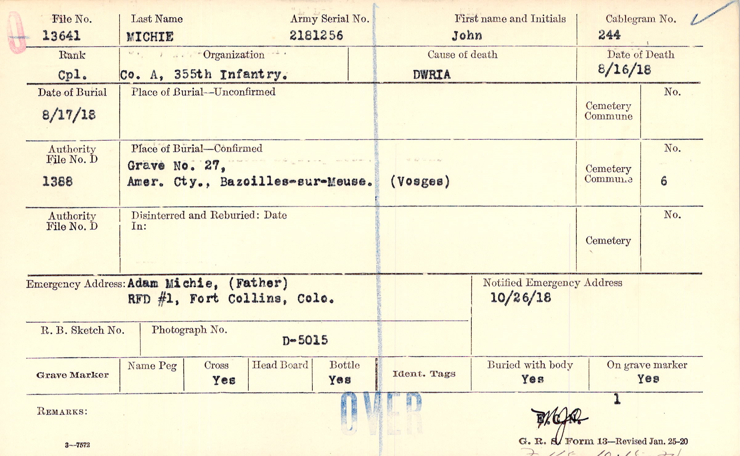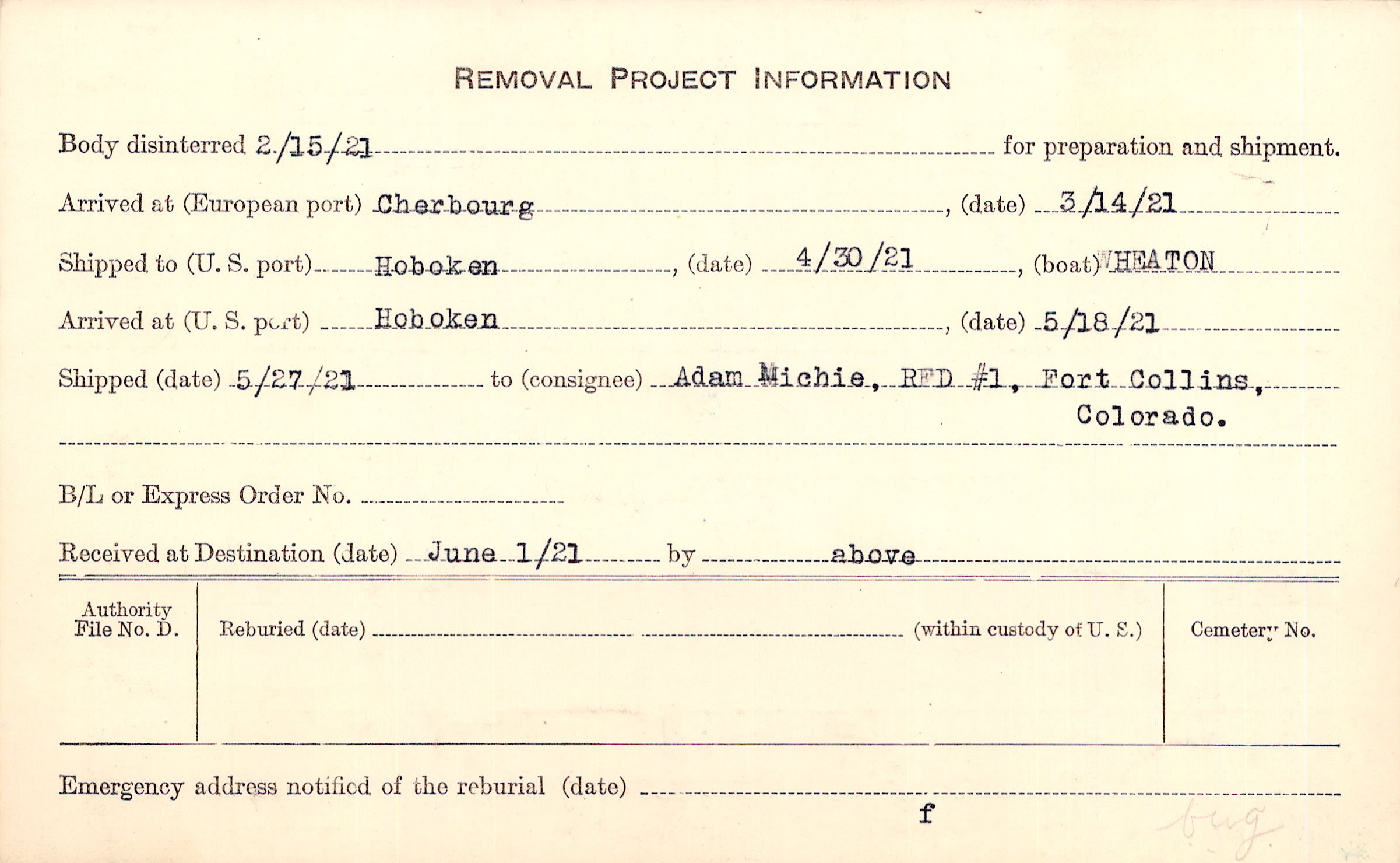 Adam Michie, (Father), RFD #1, Fort Collins, Colo.