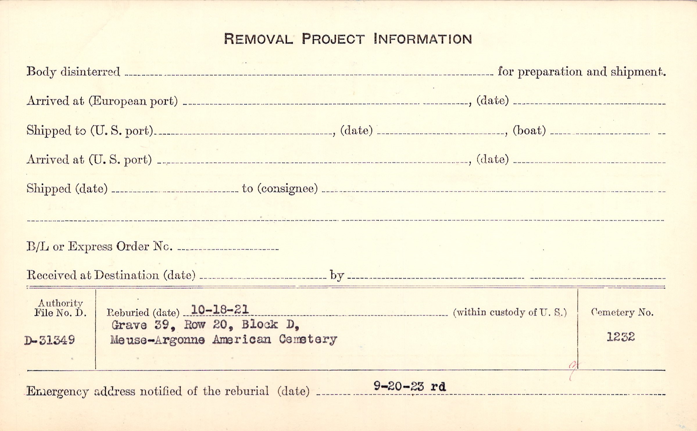 | Permanent Burial in Foreign Cemetery |