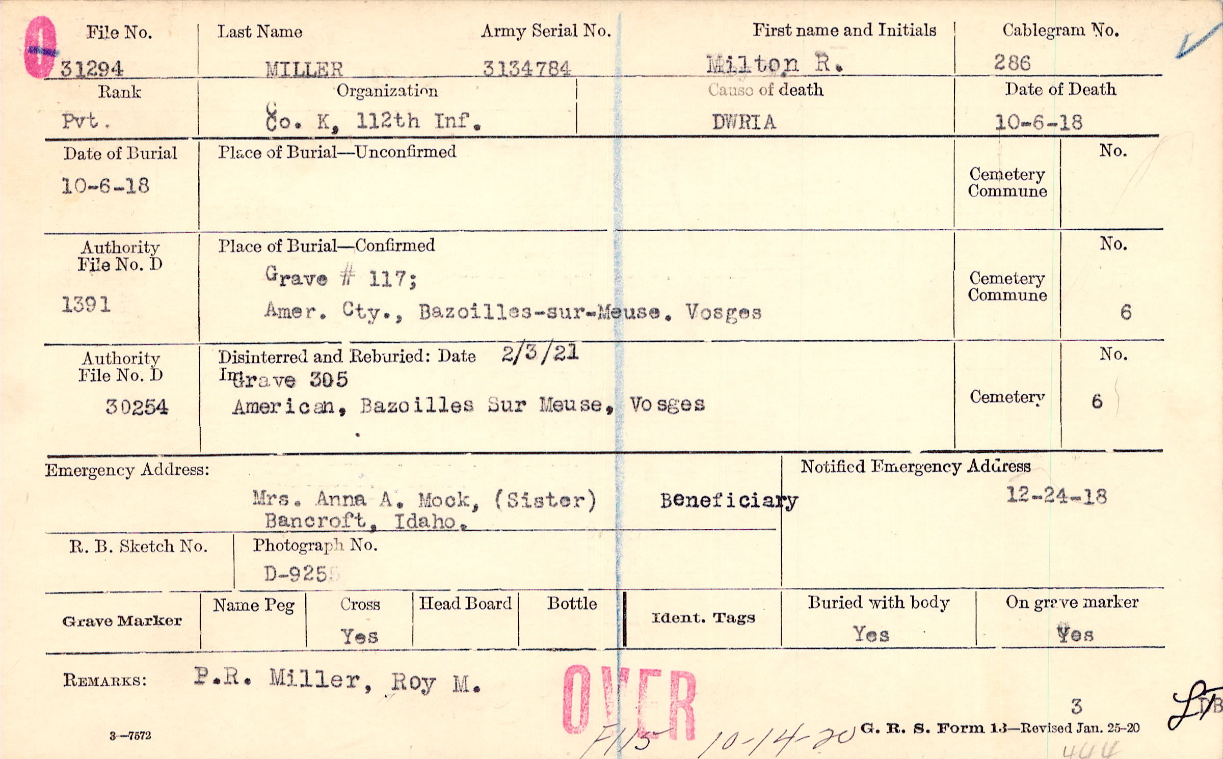 P.R. Miller, Roy M., F115 10-14-20
