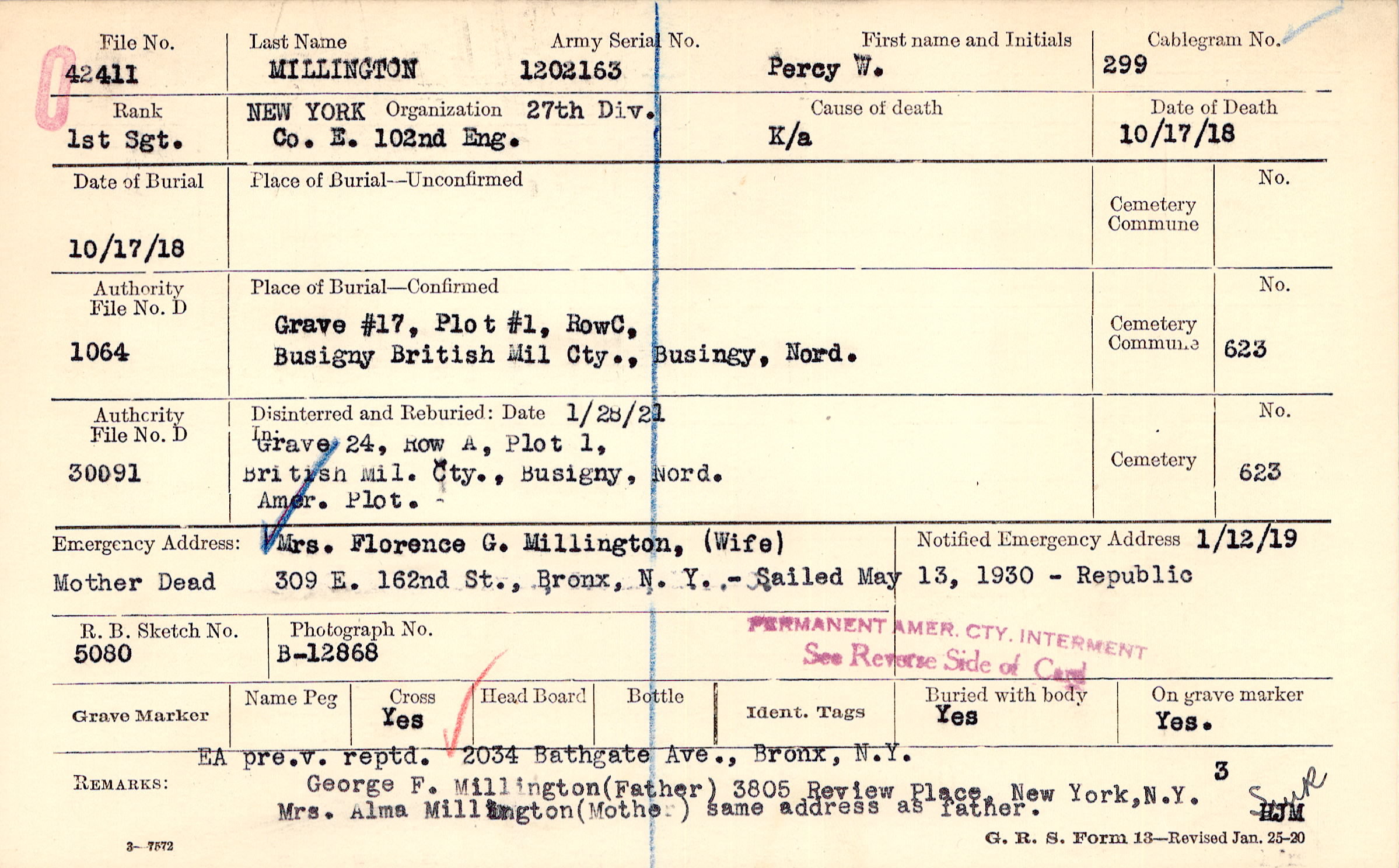 Mrs. Florence G. Millington, (Wife), 309 E. 162nd St., Bronx, N. Y., Mother Dead Sailed May 13, 1930 - Republic