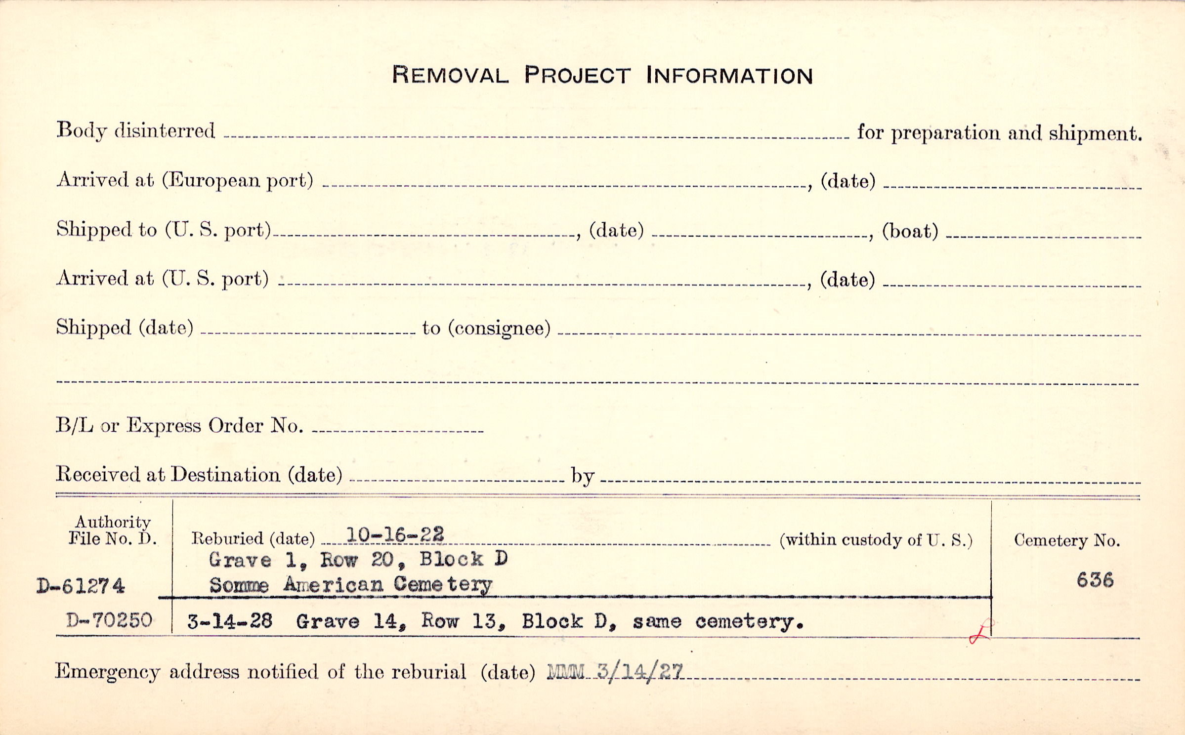 Prior Burial in Foreign Cemetery |