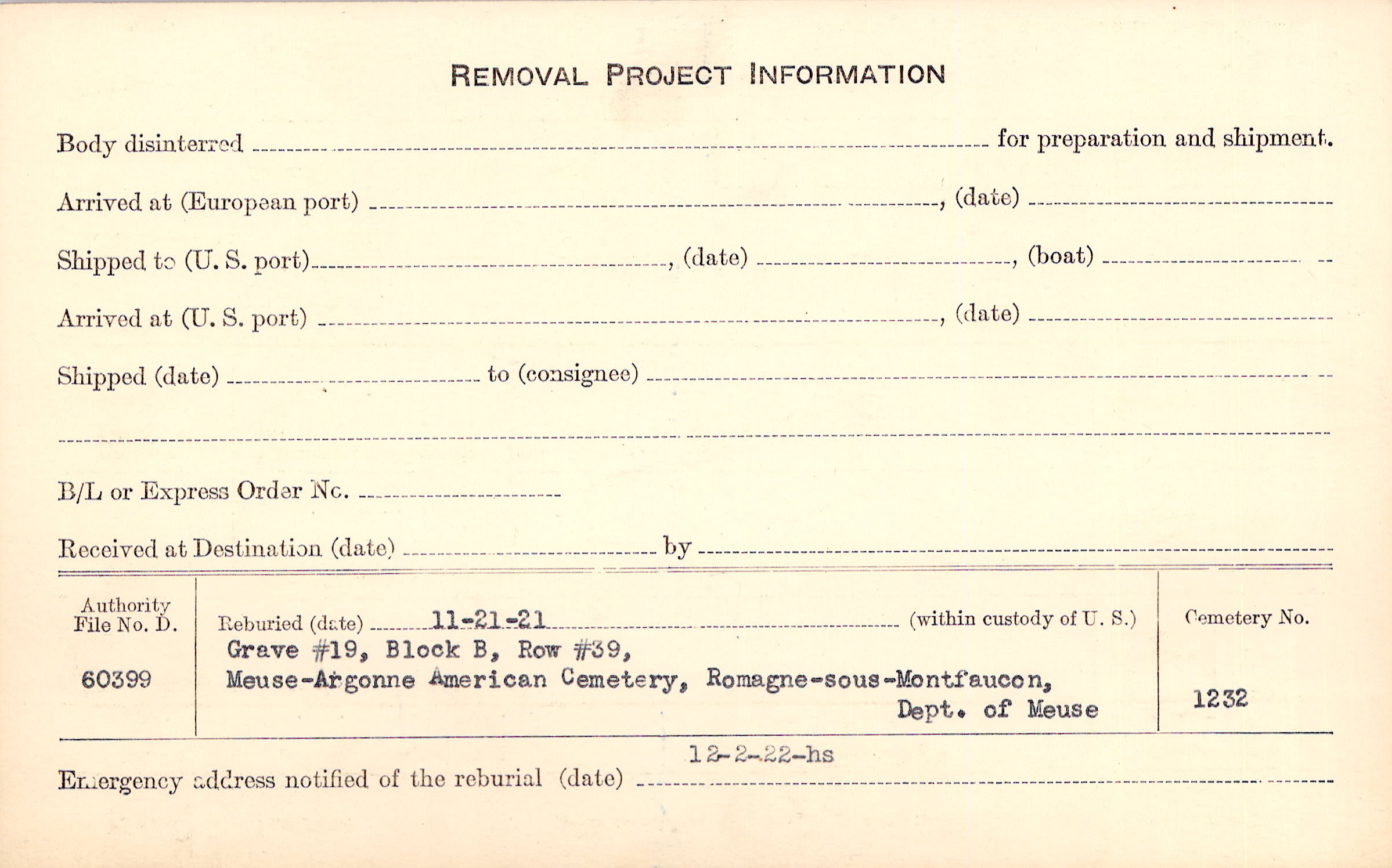 | Permanent Burial in Foreign Cemetery |