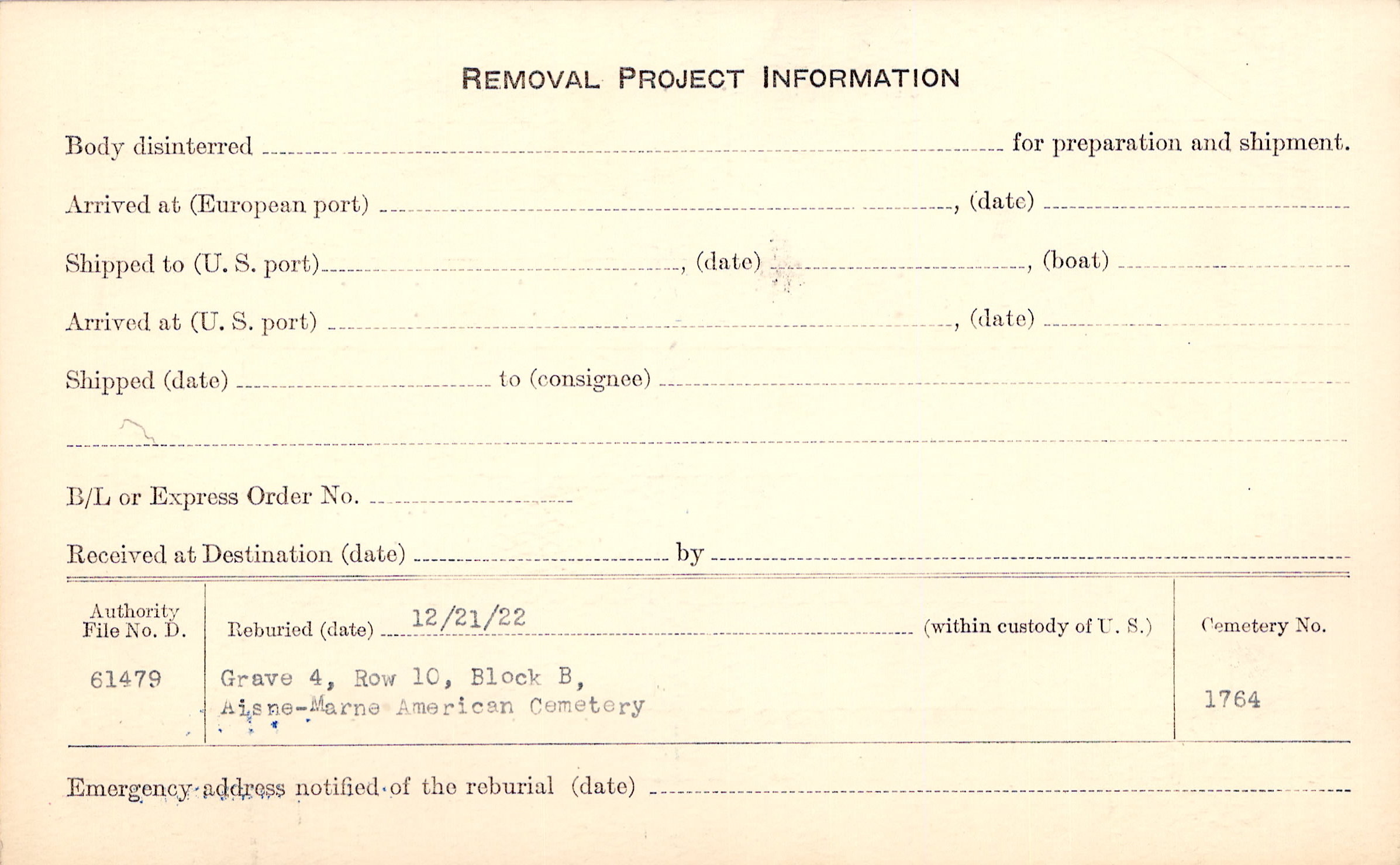 | Permanent Burial in Foreign Cemetery |