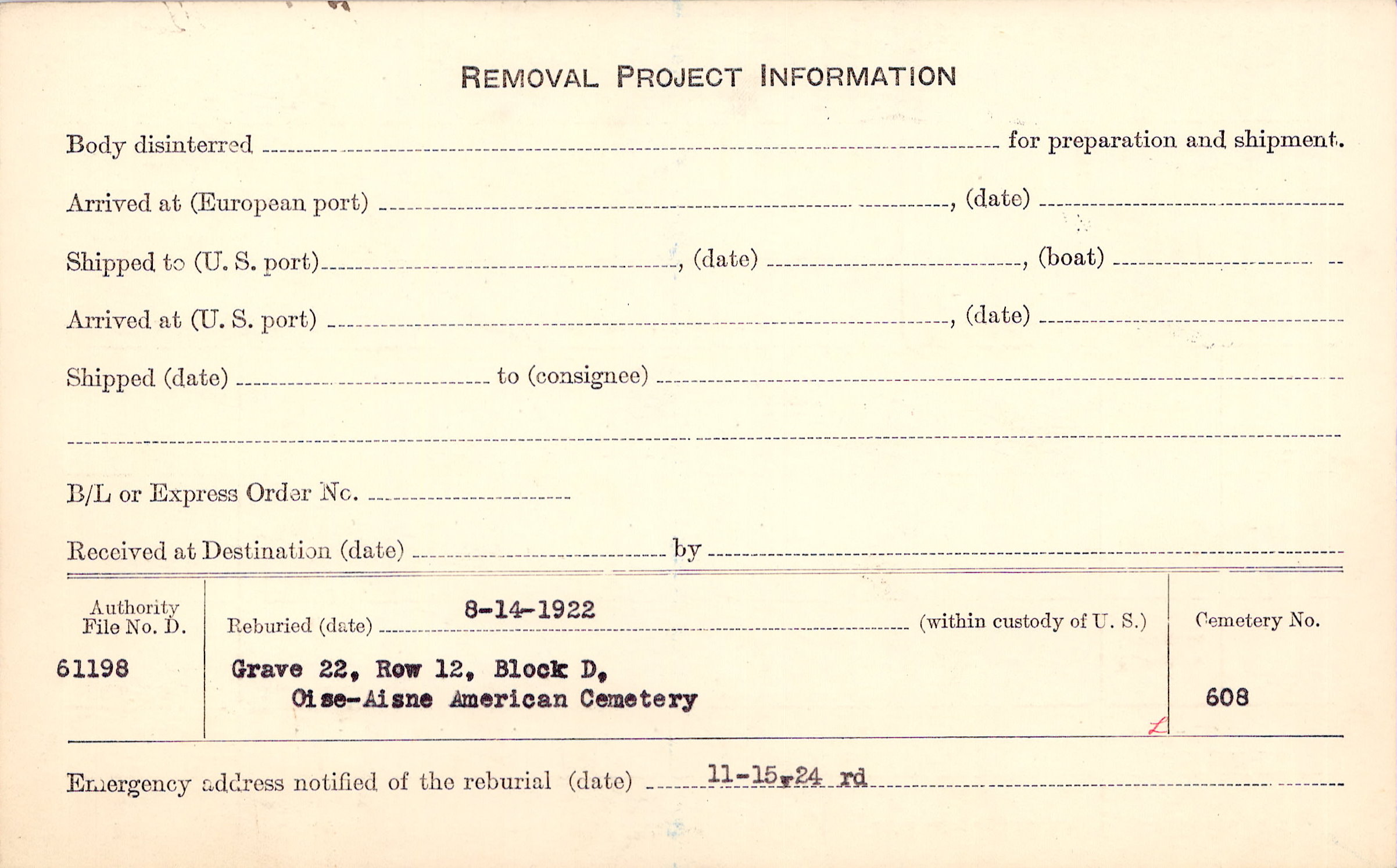 | Reburied (date): |