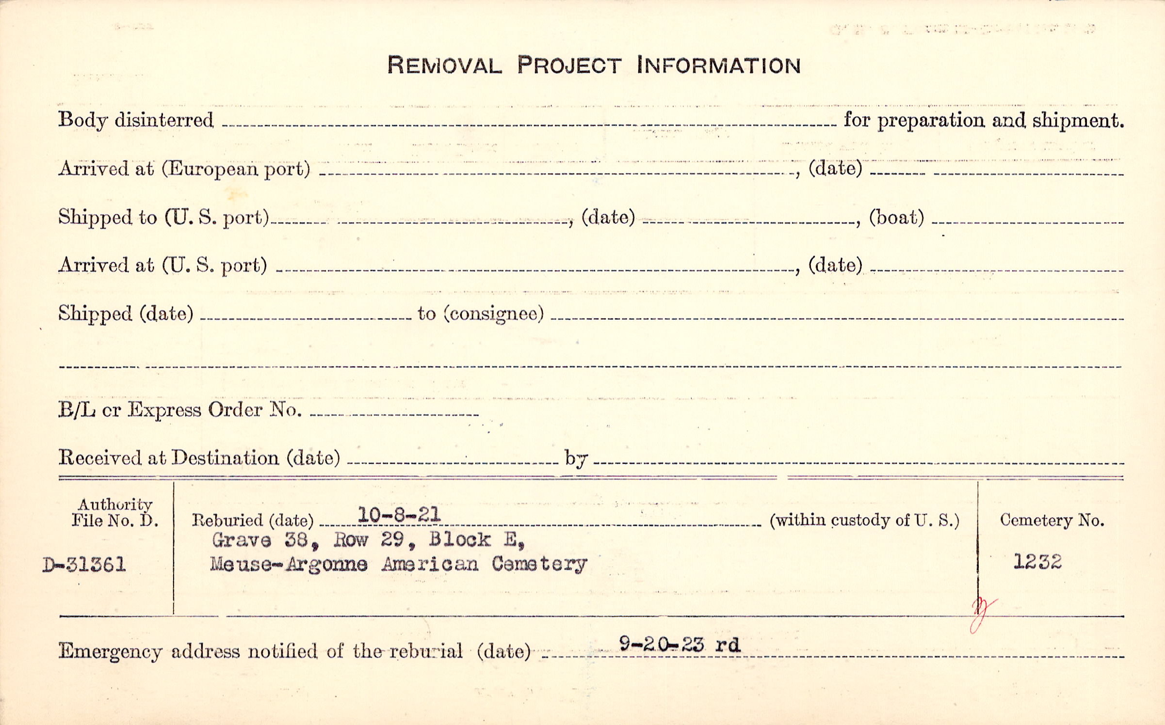 | Permanent Burial in Foreign Cemetery |