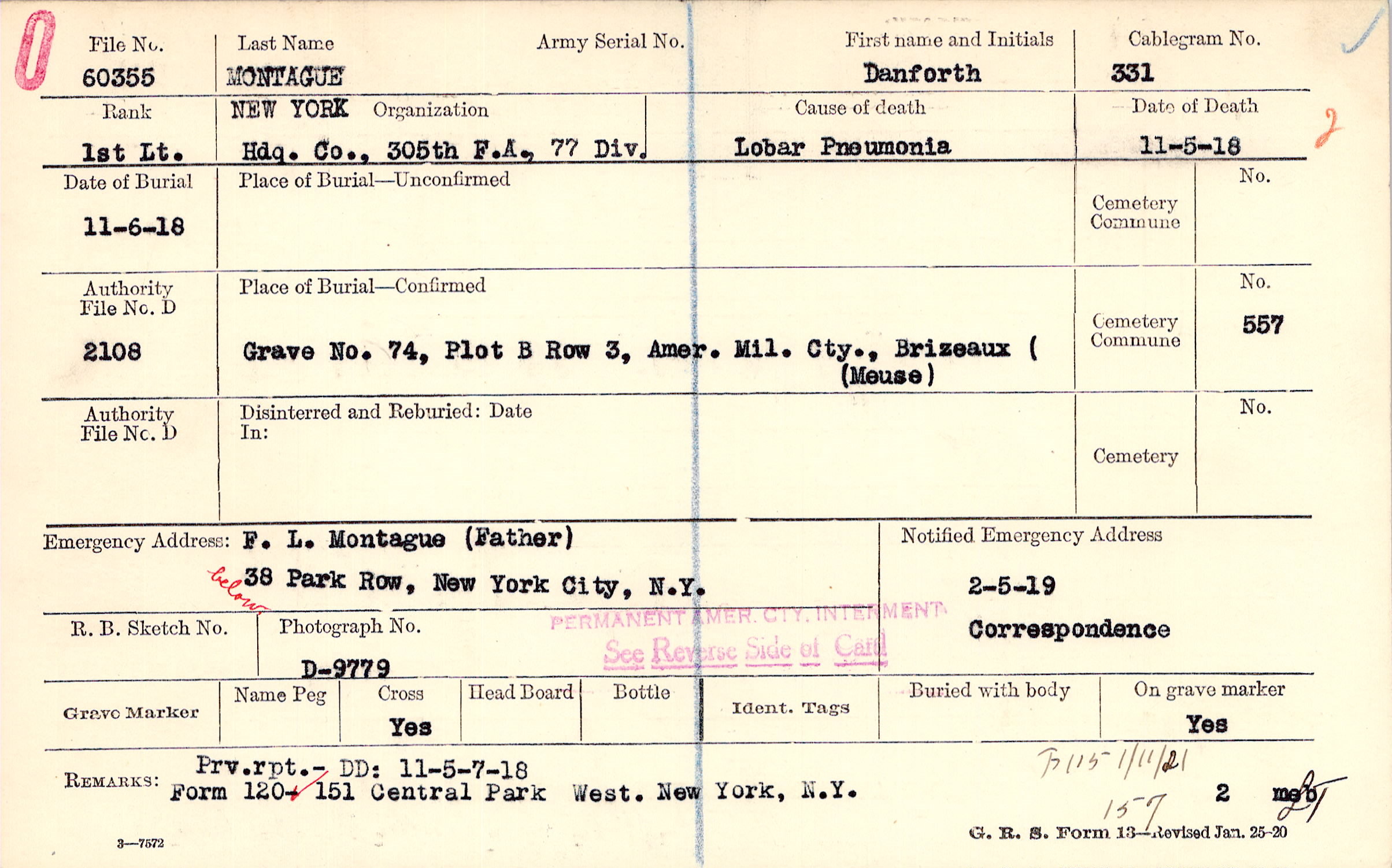 Grave 74, Plot B, Row 3, Amer. Mil. Cty., Brizeaux, Meuse