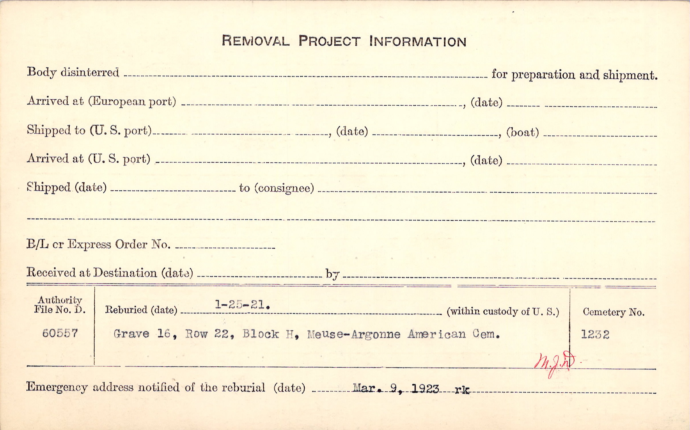 | Permanent Burial in Foreign Cemetery |