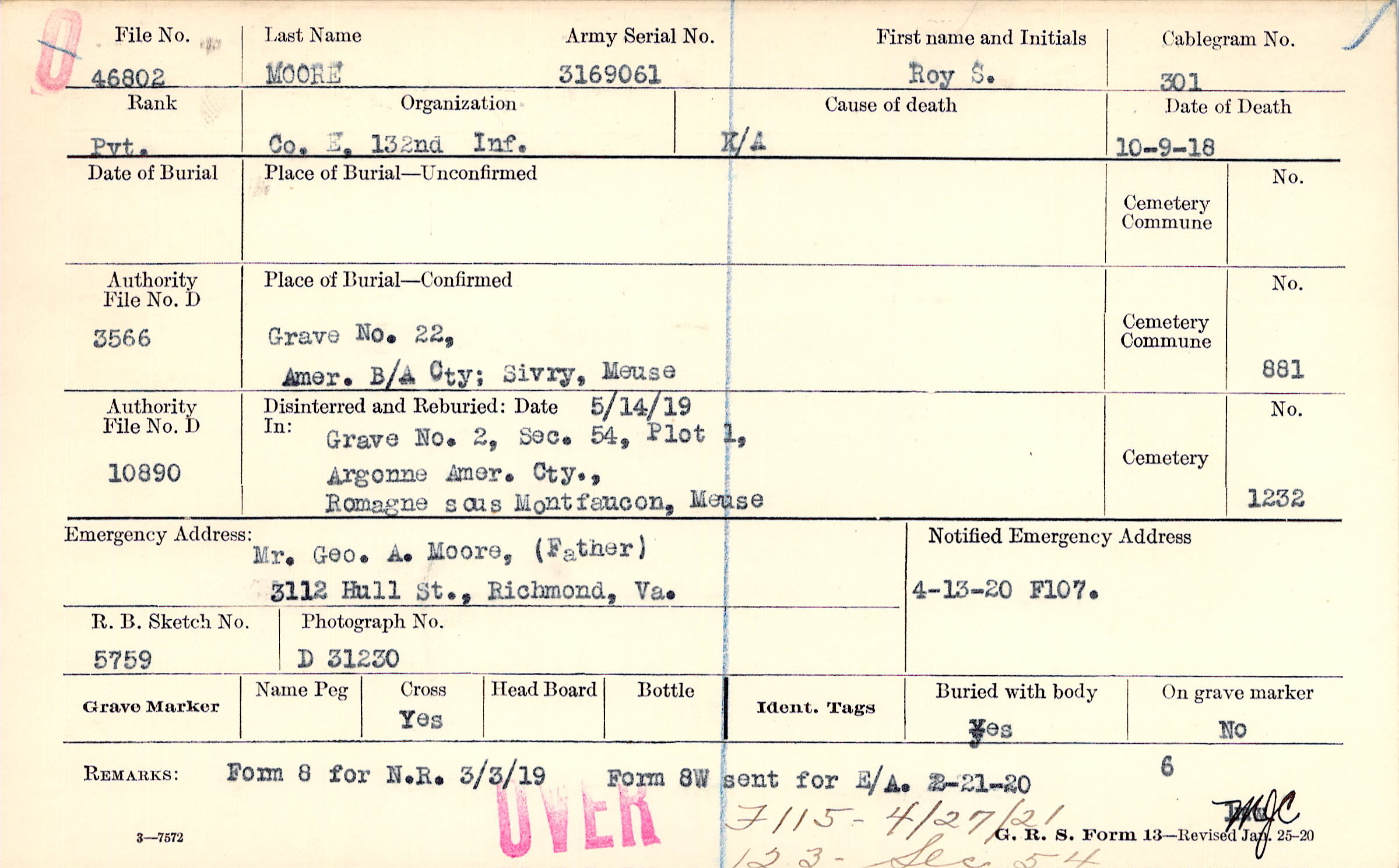 Grave 22, Amer. B/A Cty., Sivry, Meuse.