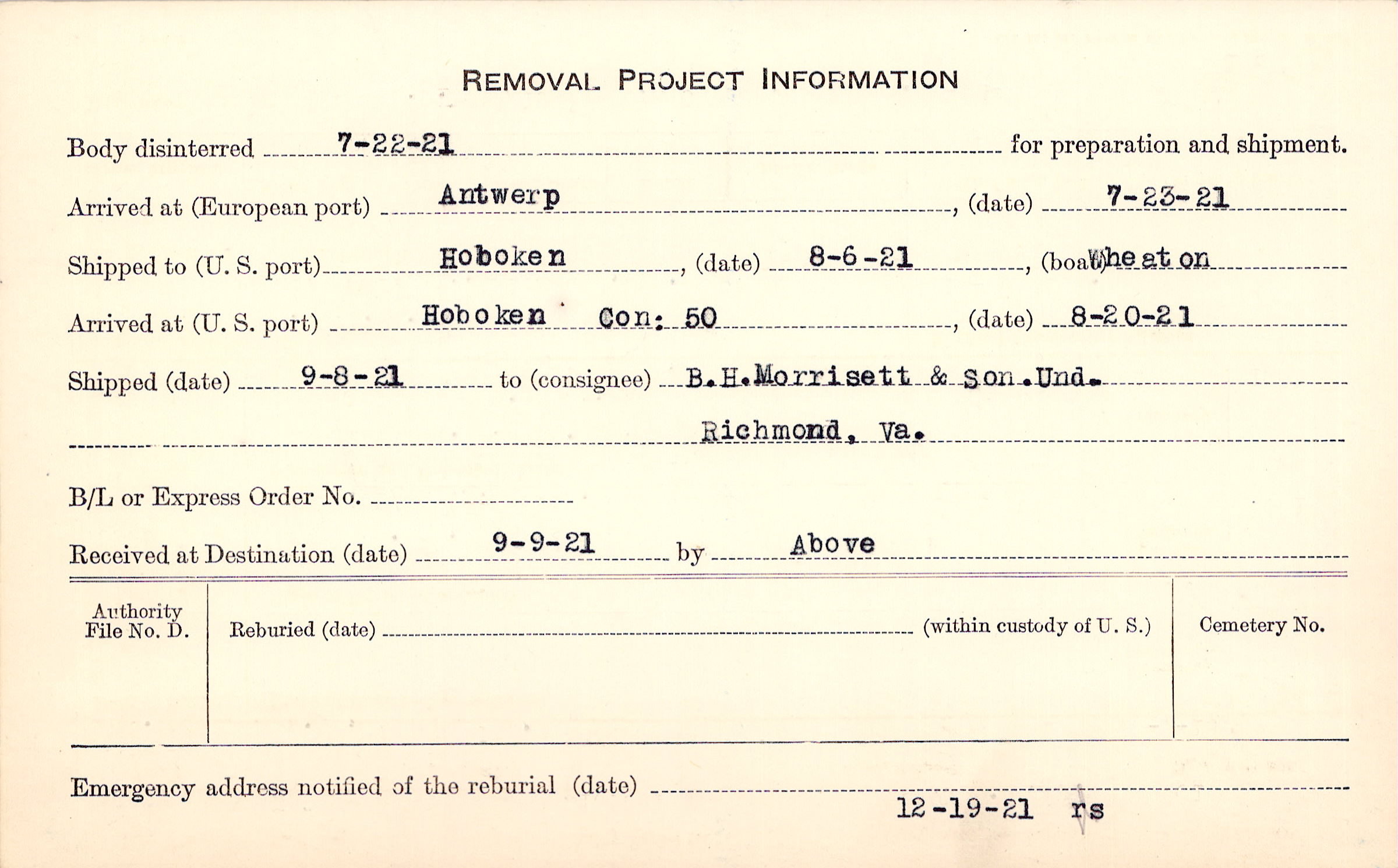 to B. H. Morrisett & Son. Und., Richmond, Va.