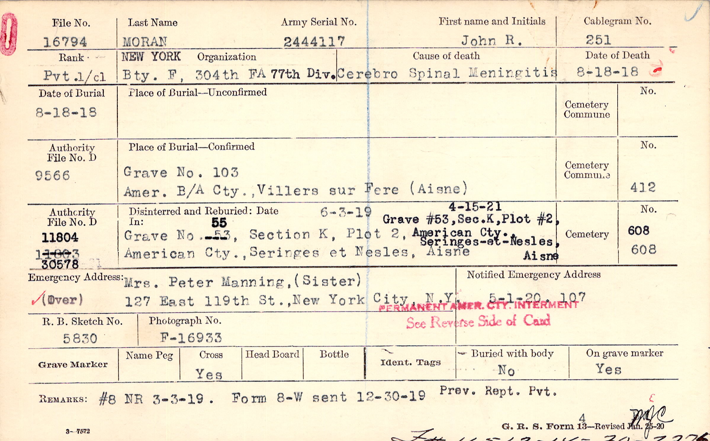 Grave 103, Amer. B/A Cty., Villers sur Fere, Aisne