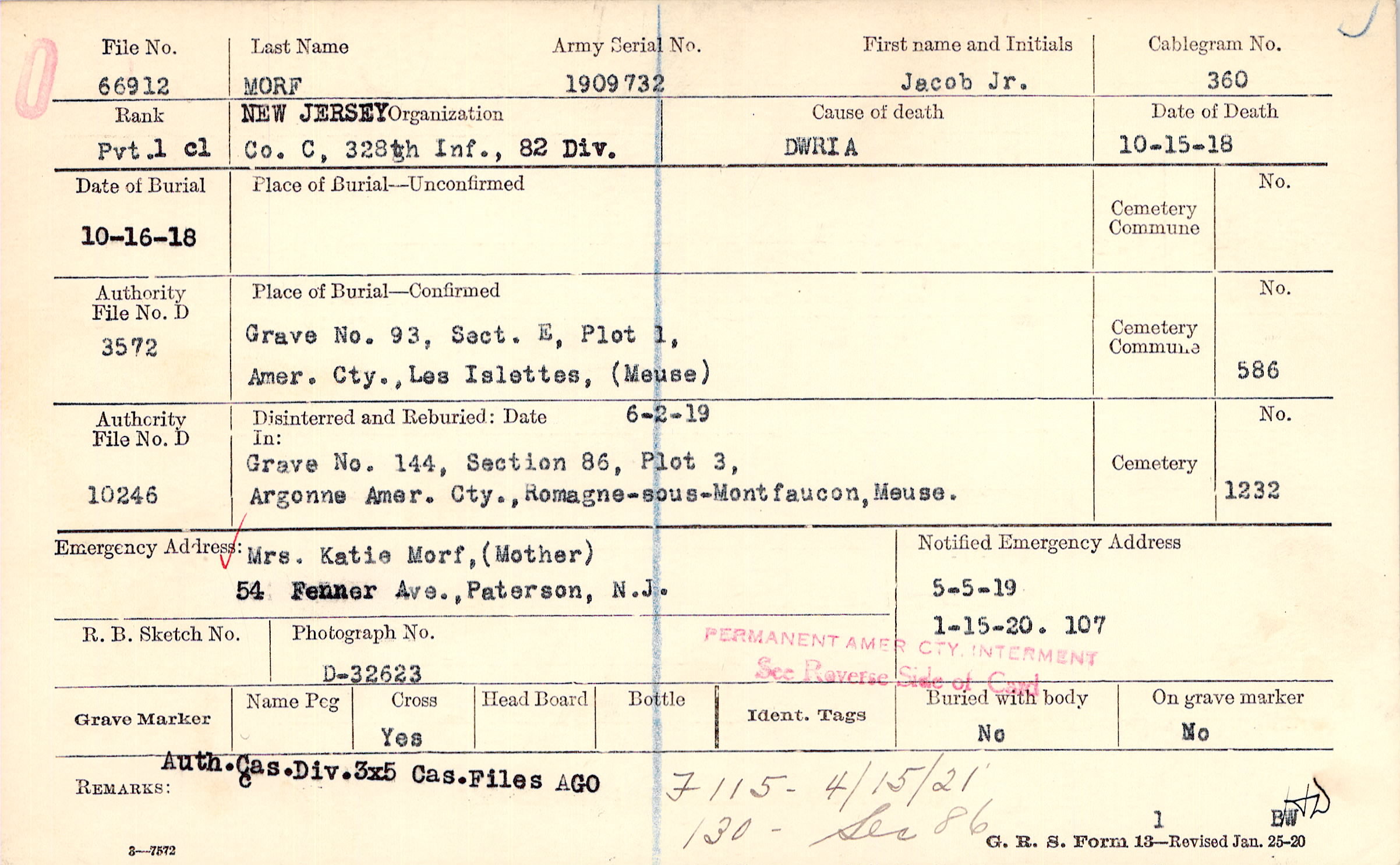Mrs. Katie Morf, (Mother), 54 Fenner Ave., Paterson, N.J.