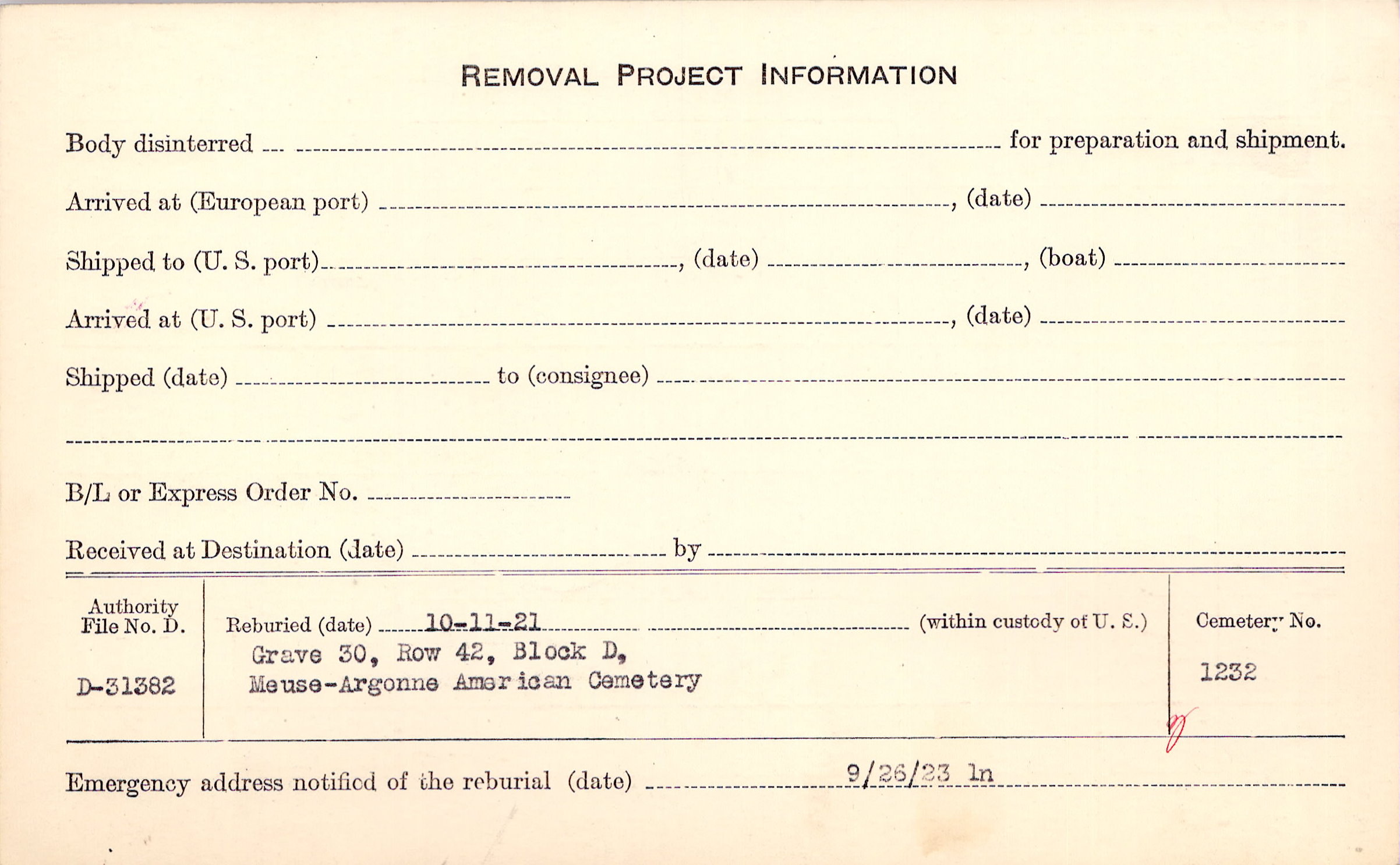 Grave 93, Sect. E, Plot 1, Amer. Cty., Les Islettes, Meuse