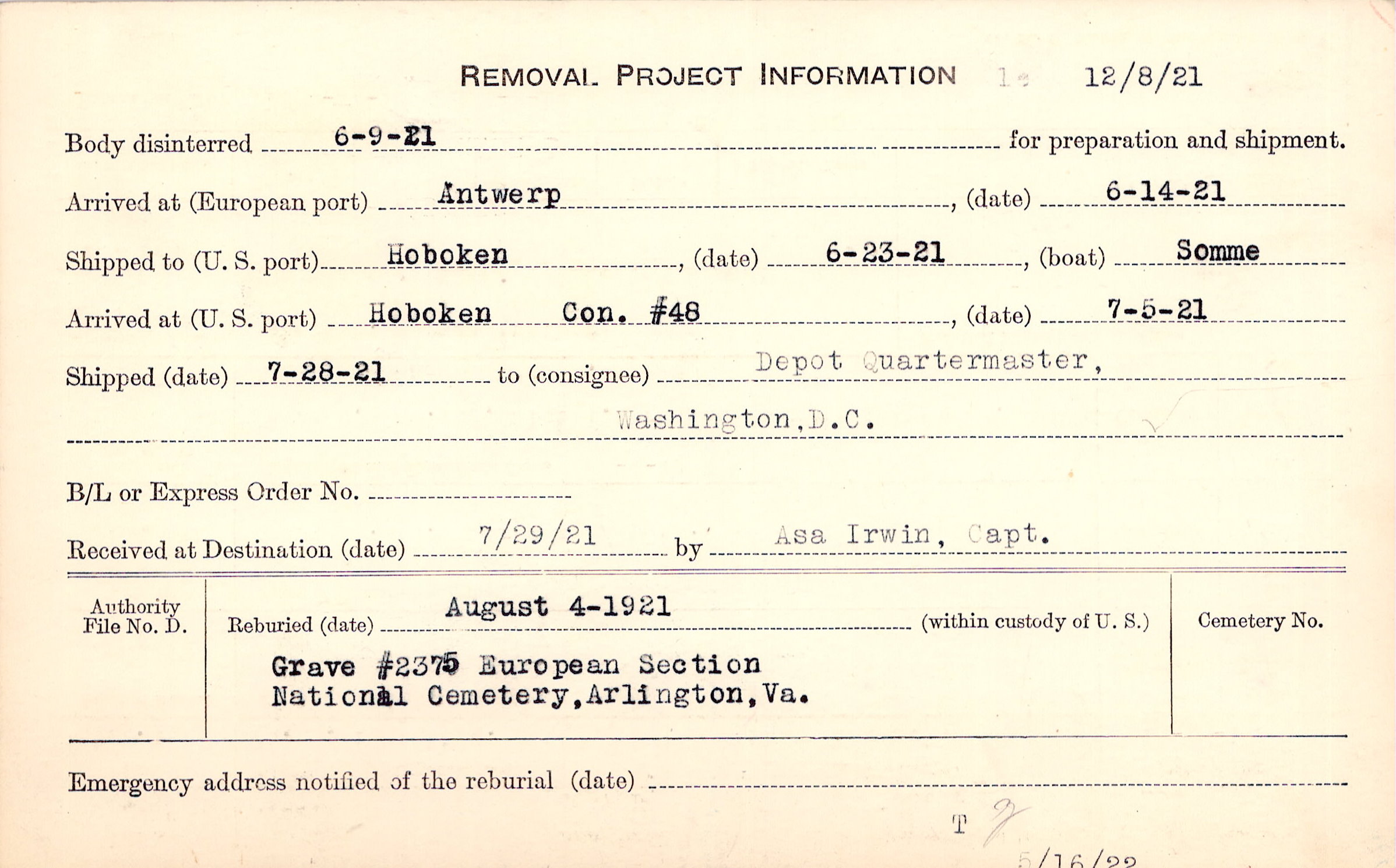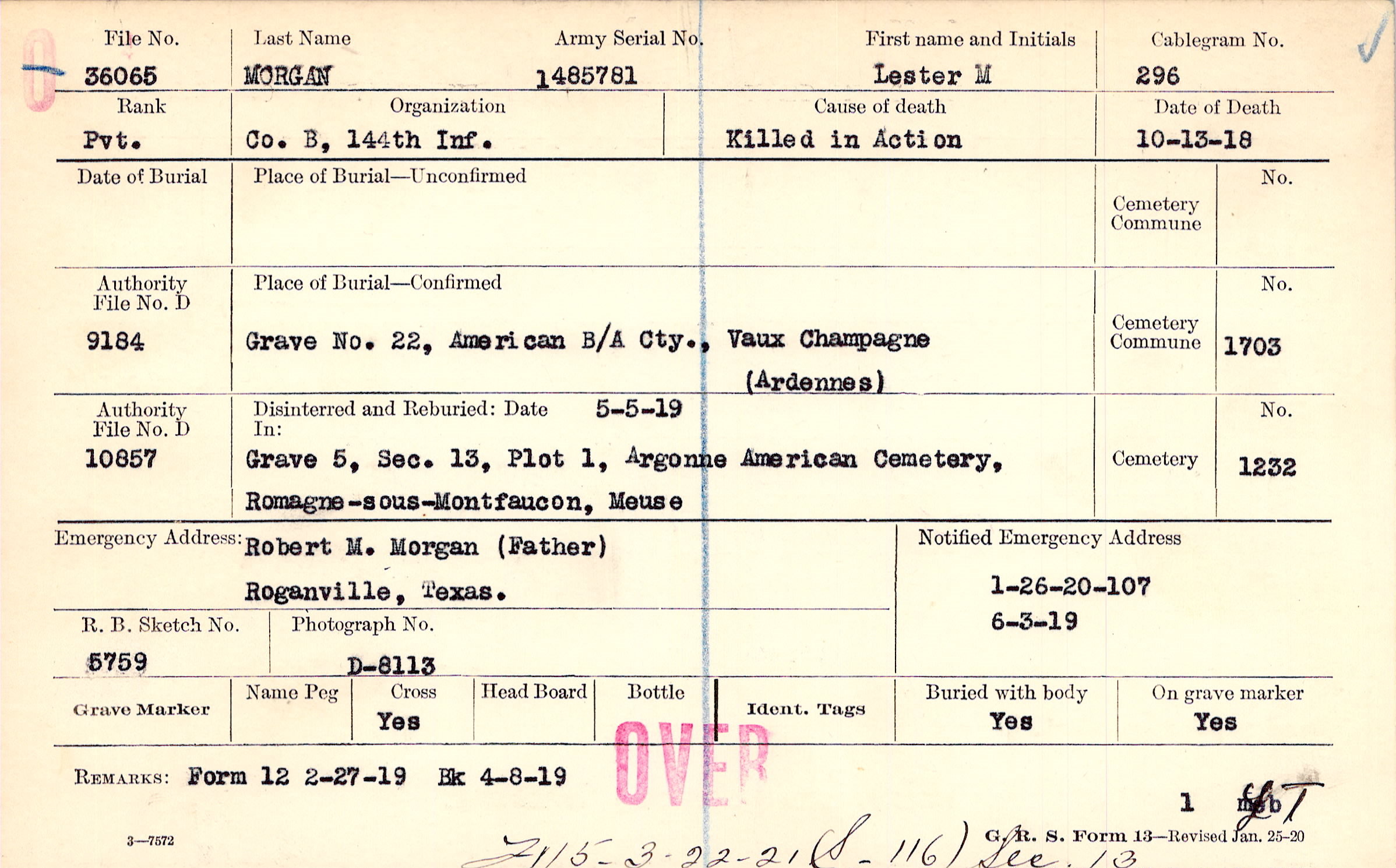 Grave 22, American B/A Cty., Vaux Champagne, Ardennes.