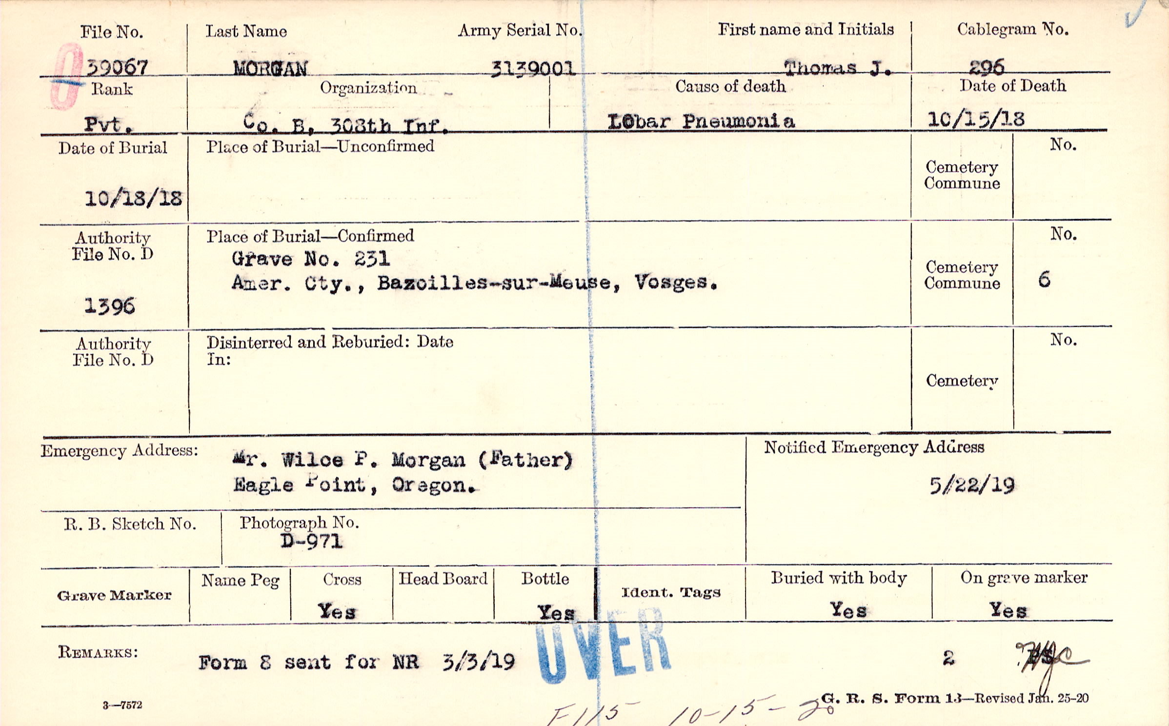 Mr. Wilce P. Morgan (Father), Eagle Point, Oregon.