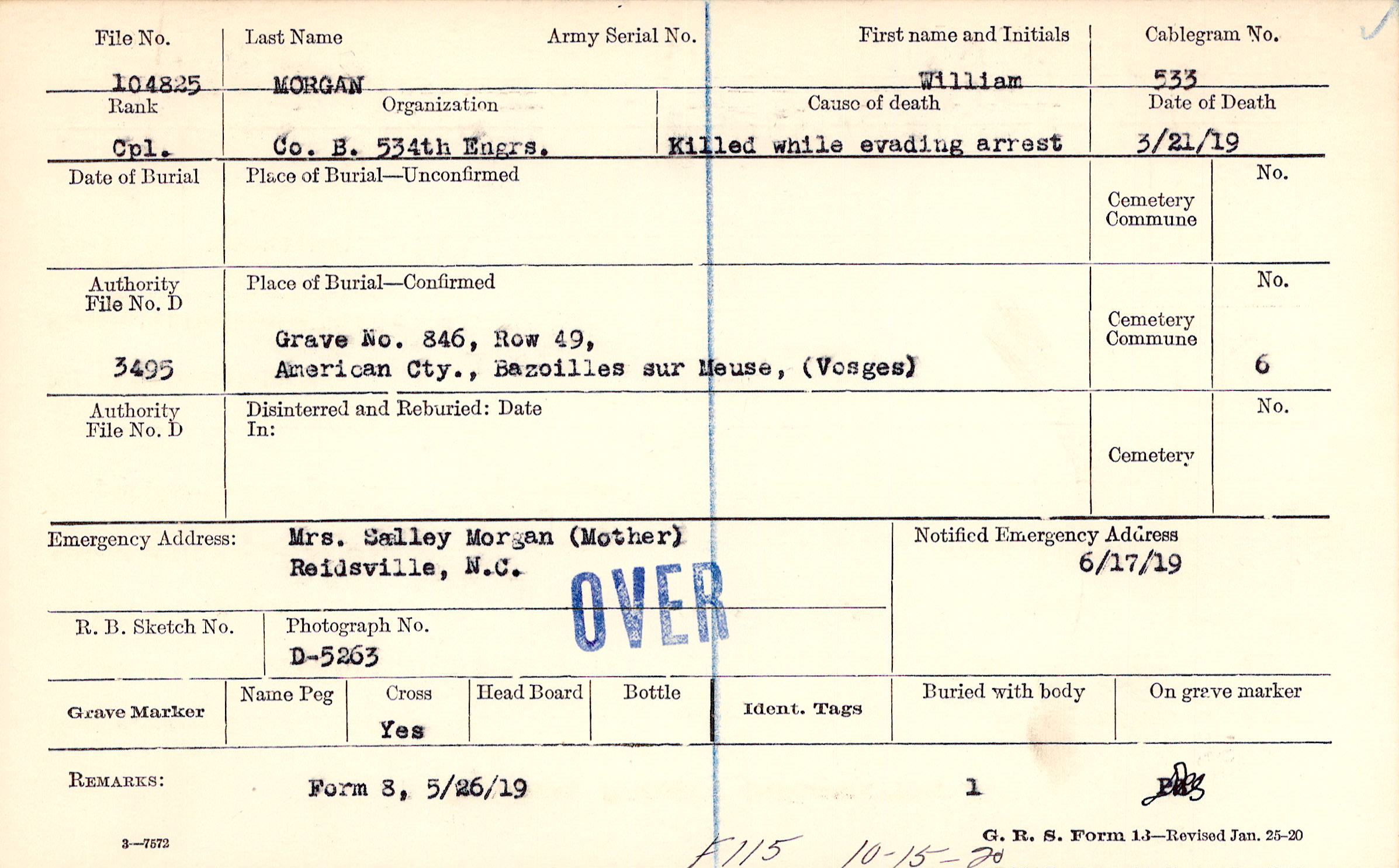 Grave 846, Row 49, American Cty., Bazoilles sur Meuse, Vosges