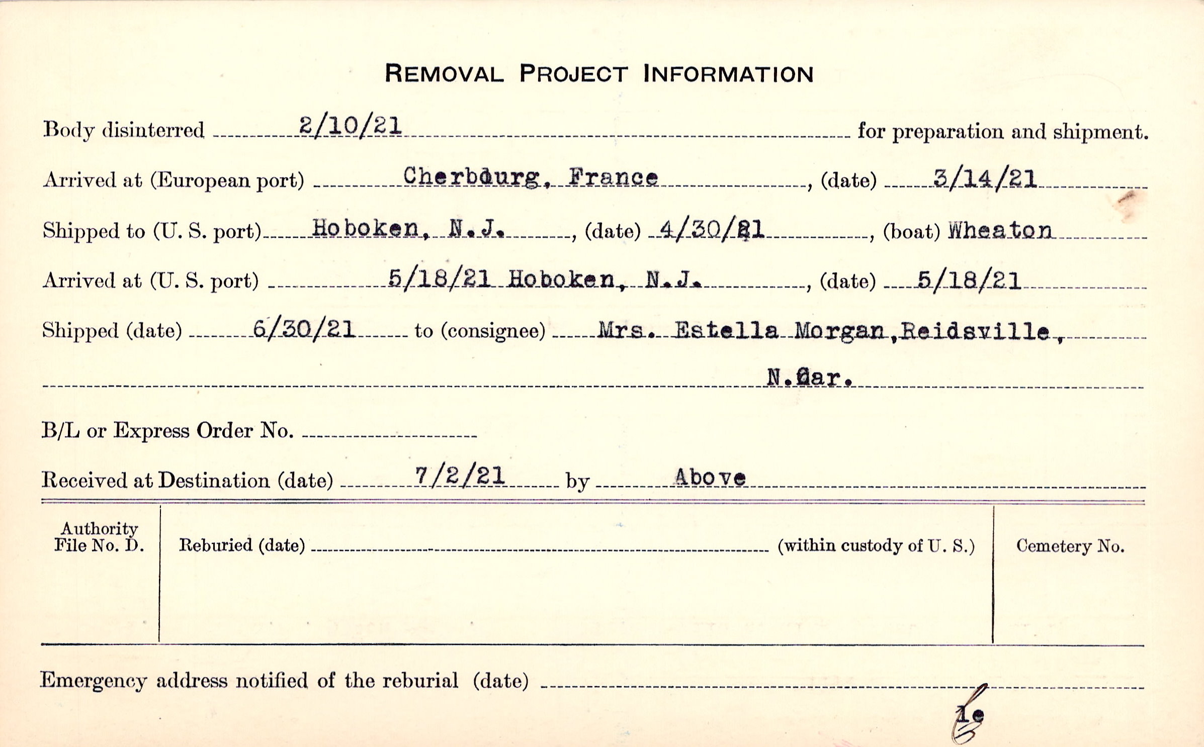 Mrs. Salley Morgan (Mother), Reidsville, N.C.