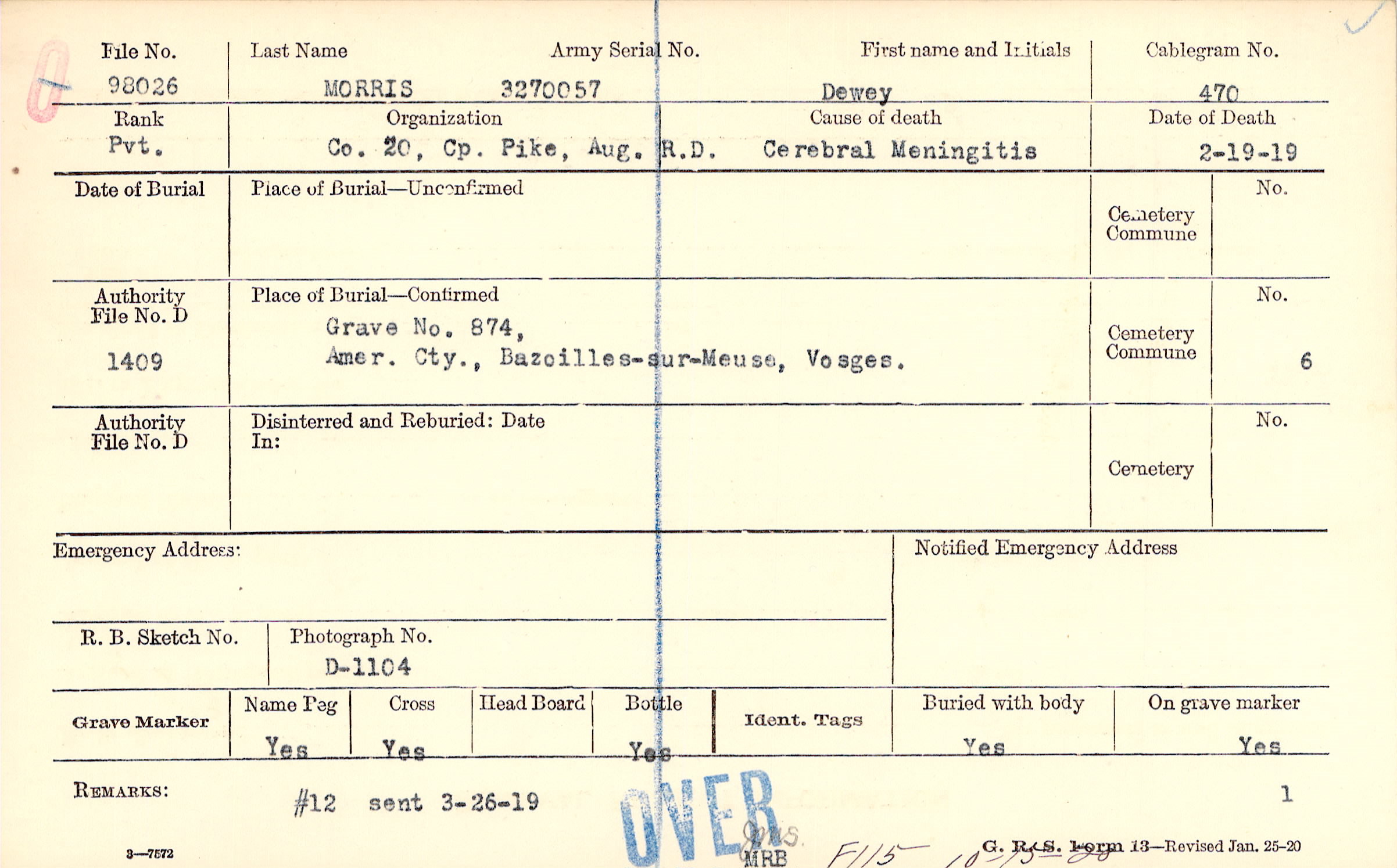 Grave 874, Amer. Cty., Bazoilles-sur-Meuse, Vosges.