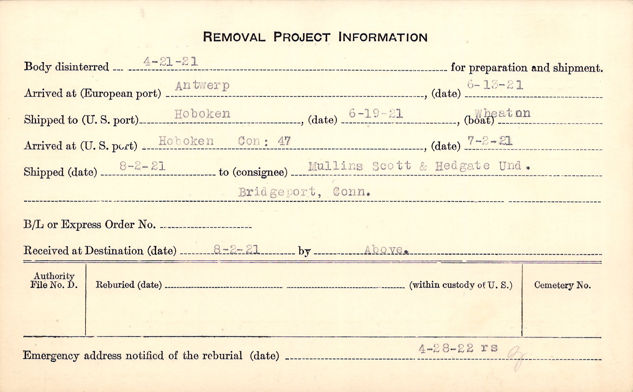 to Mullins Scott & Hedgate Und., Bridgeport, Conn.