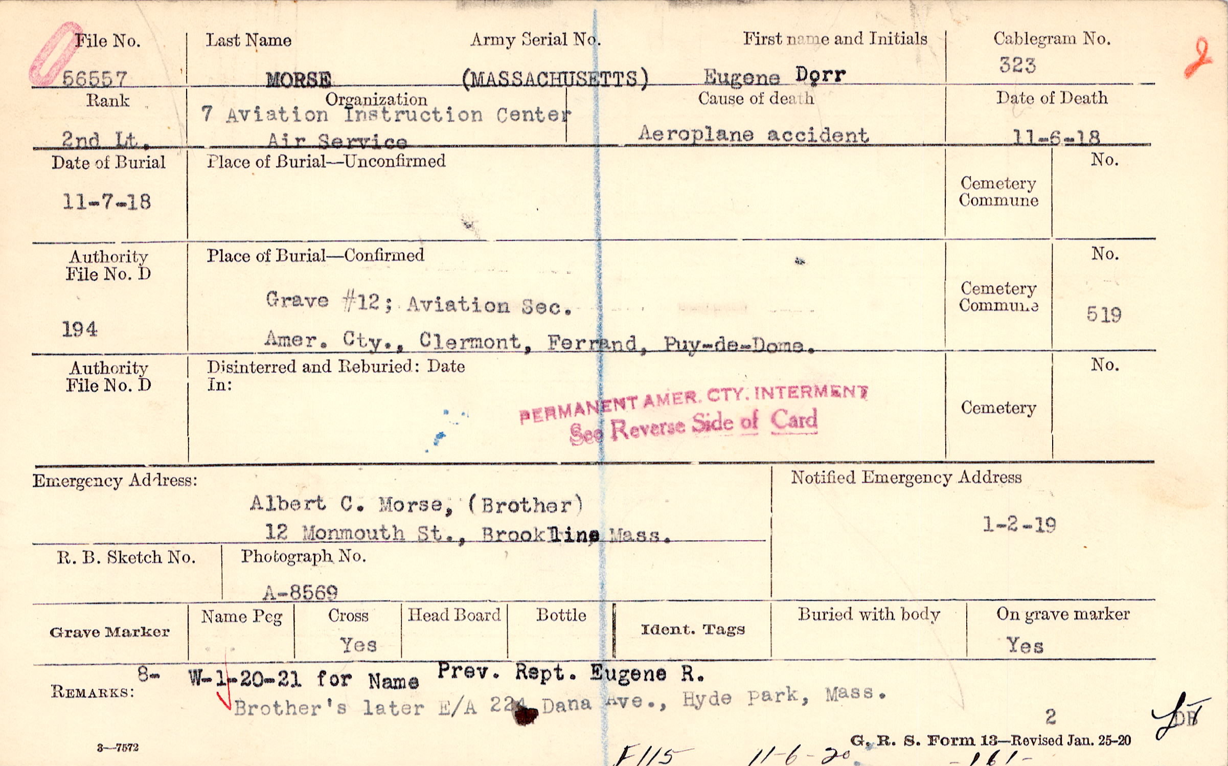Grave #12; Aviation sec. Amer. Cty., Clermont, Ferrand, Puy-de-dome.