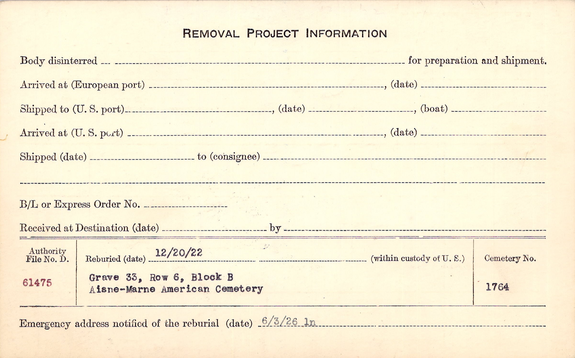 | Permanent Burial in Foreign Cemetery |