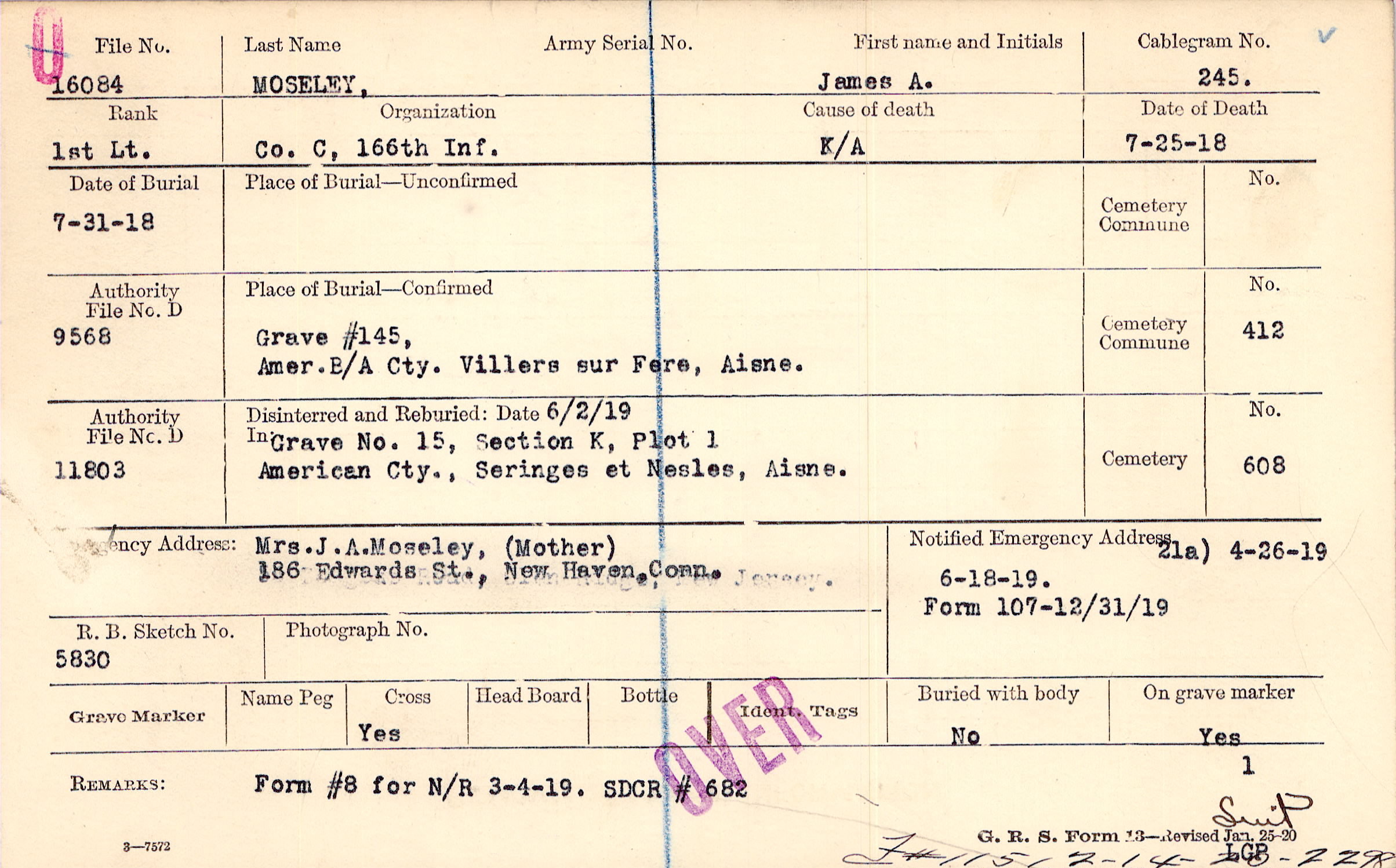Mrs. J. A. Moseley (Mother), 186 Edwards St., New Haven, Conn.