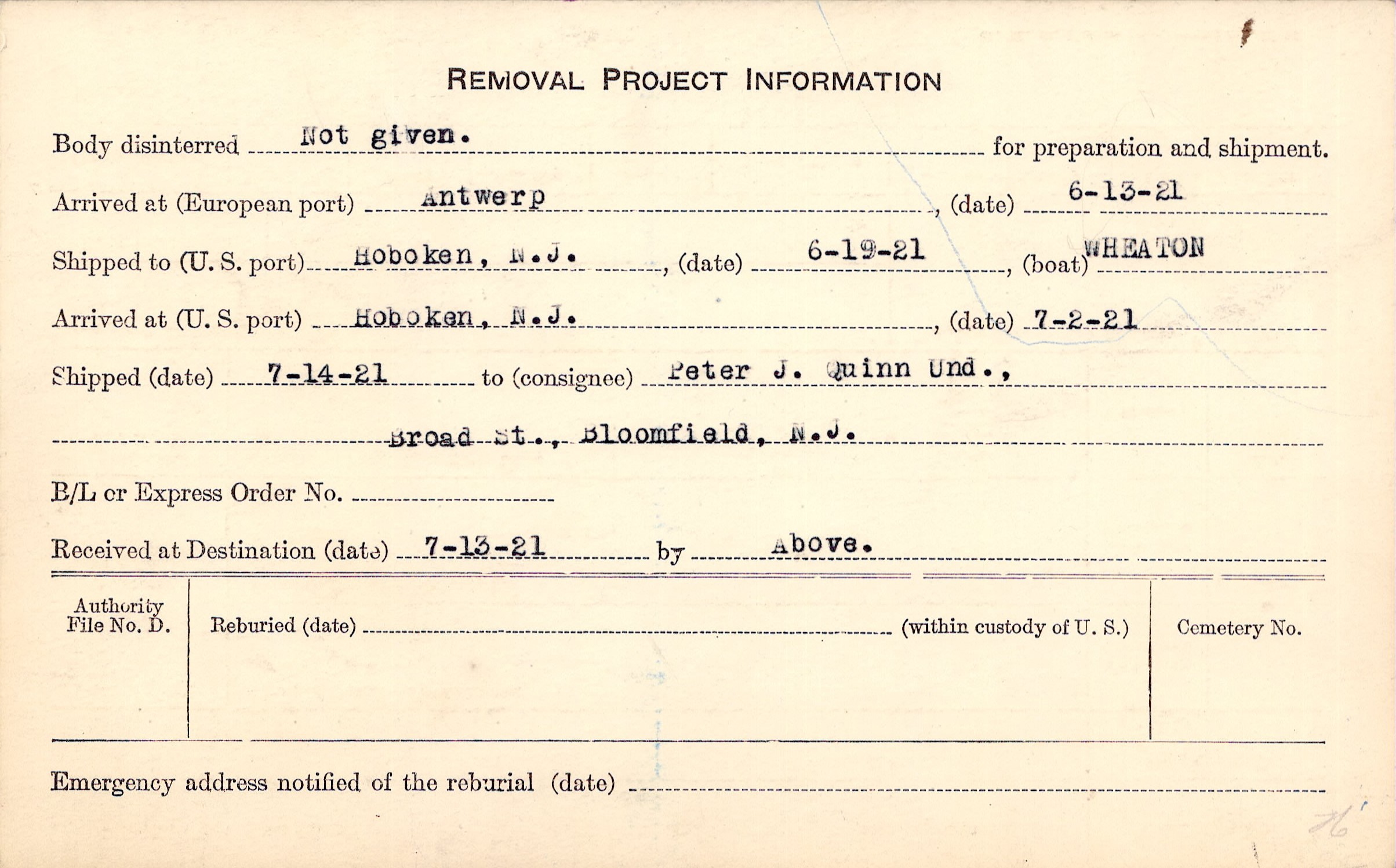 to Peter J. Quinn, Und., Broad St., Bloomfield, N.J.