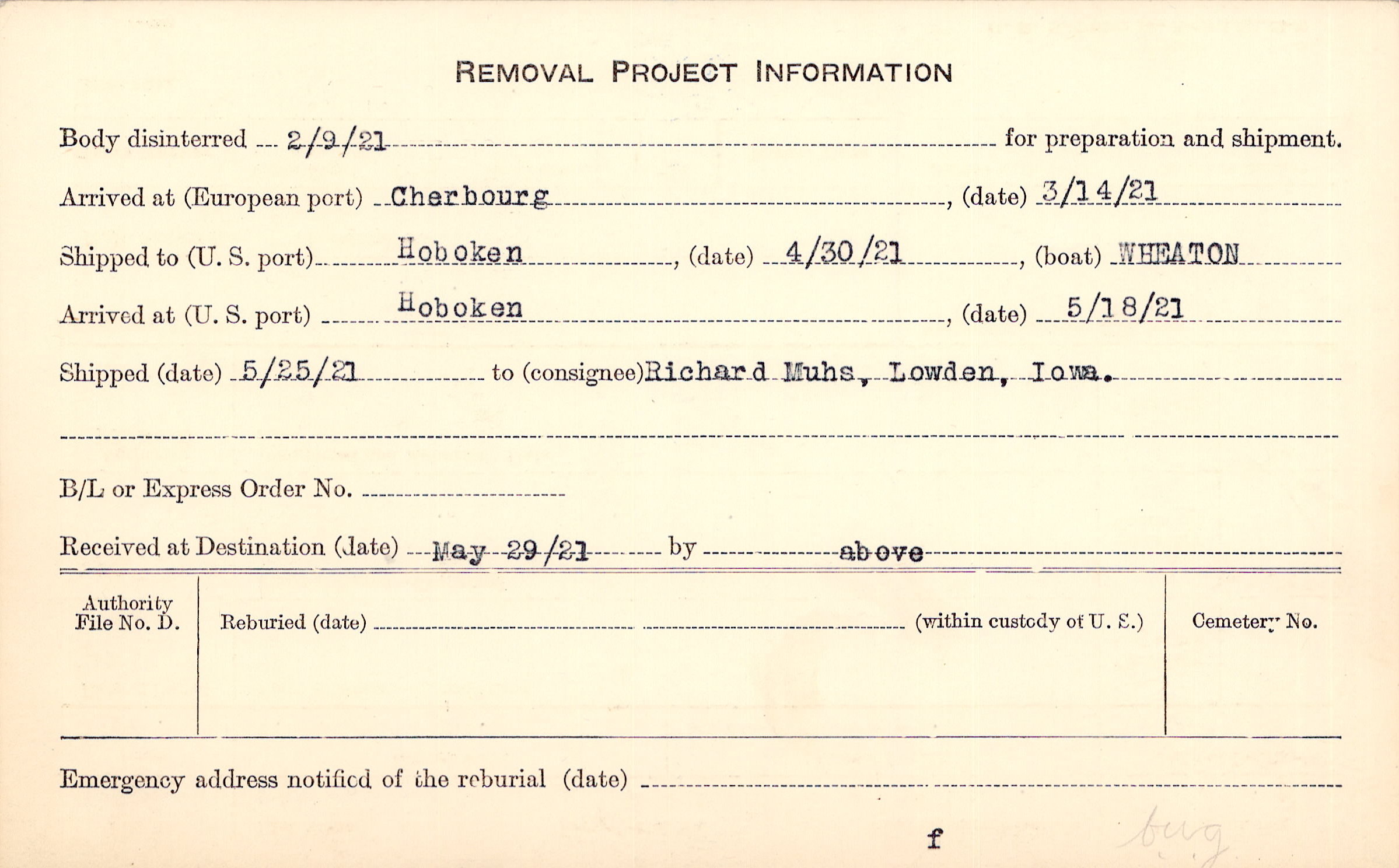 Mr. Richard Muhs, (father), Lowden, Iowa.