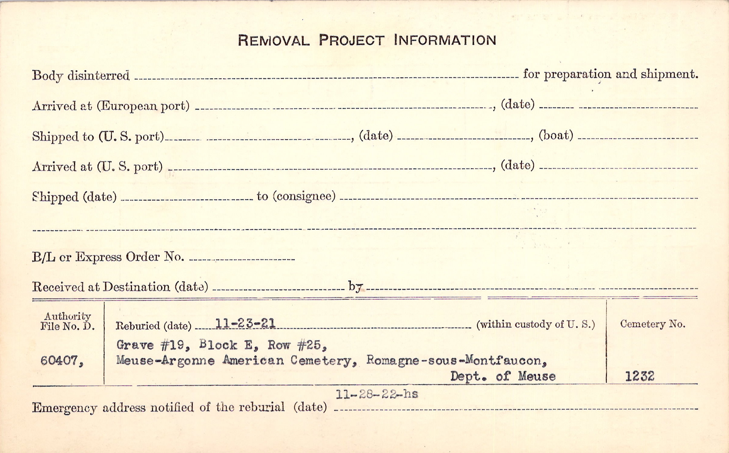 Grave 465, American Cemetery, Bazoilles, Vosges