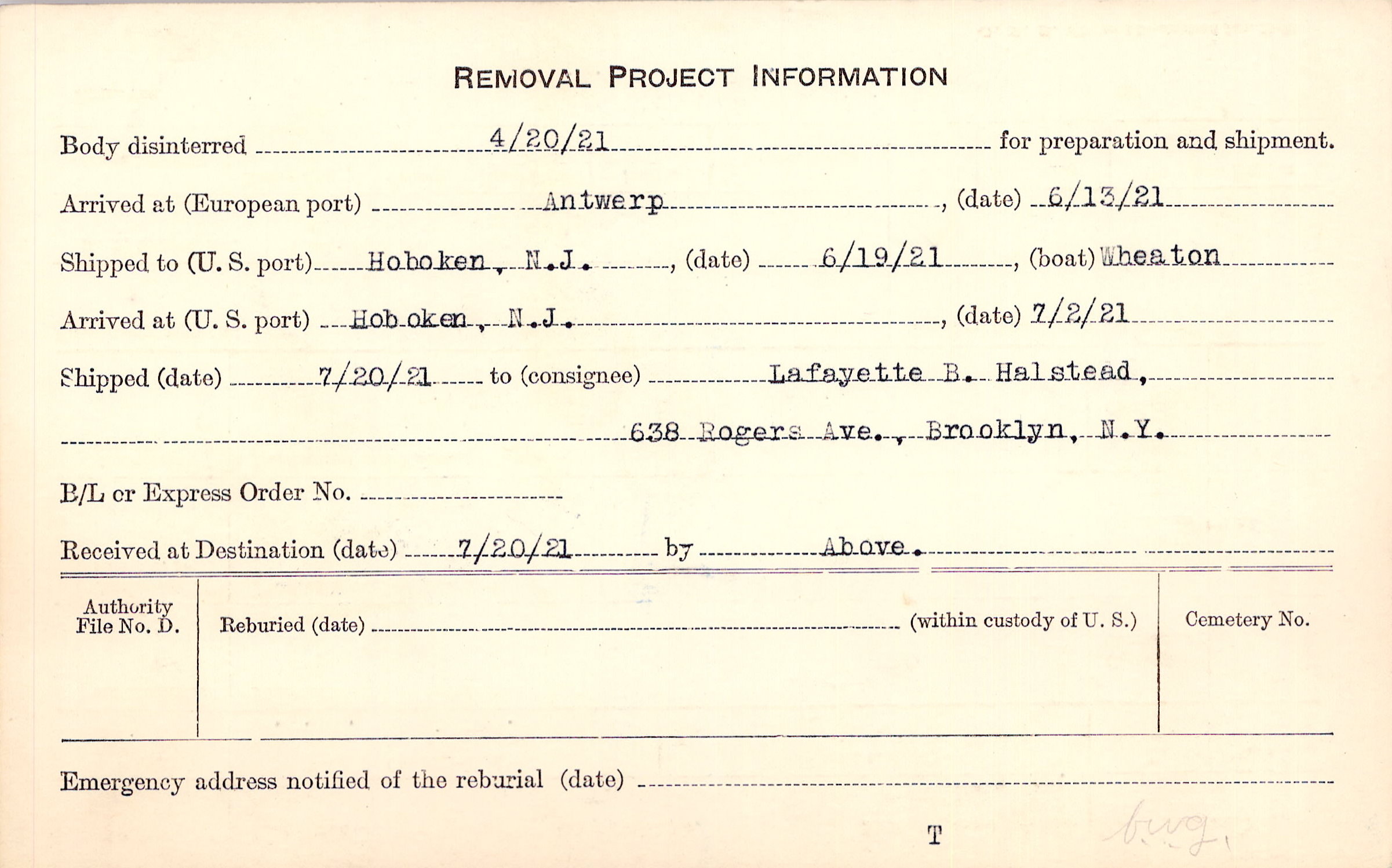 to Lafayette B. Halstead, 638 Rogers Ave., Brooklyn, N. Y.