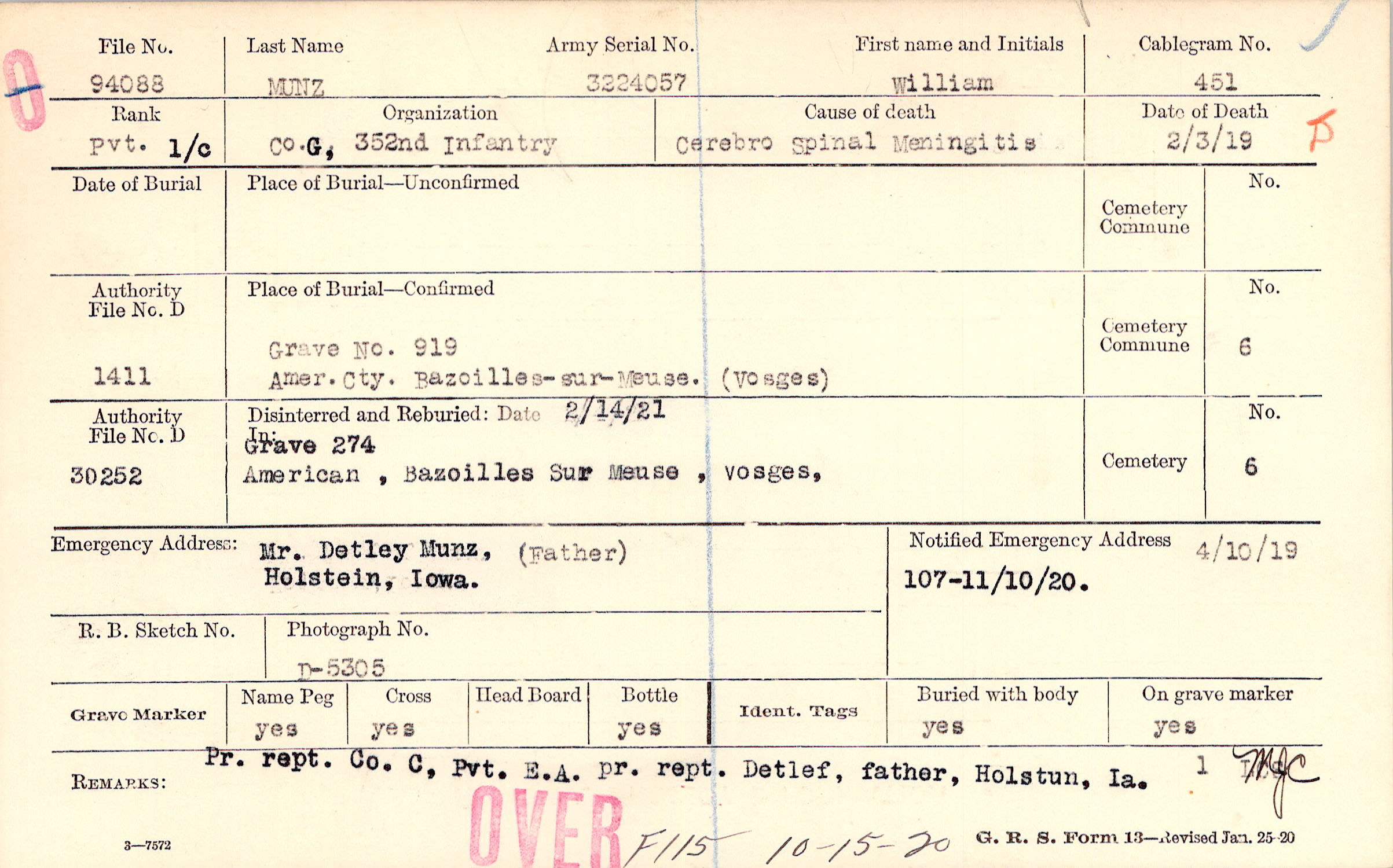 Grave 919. Amer. Cty., Bazoilles-sur-Meuse, Vosges