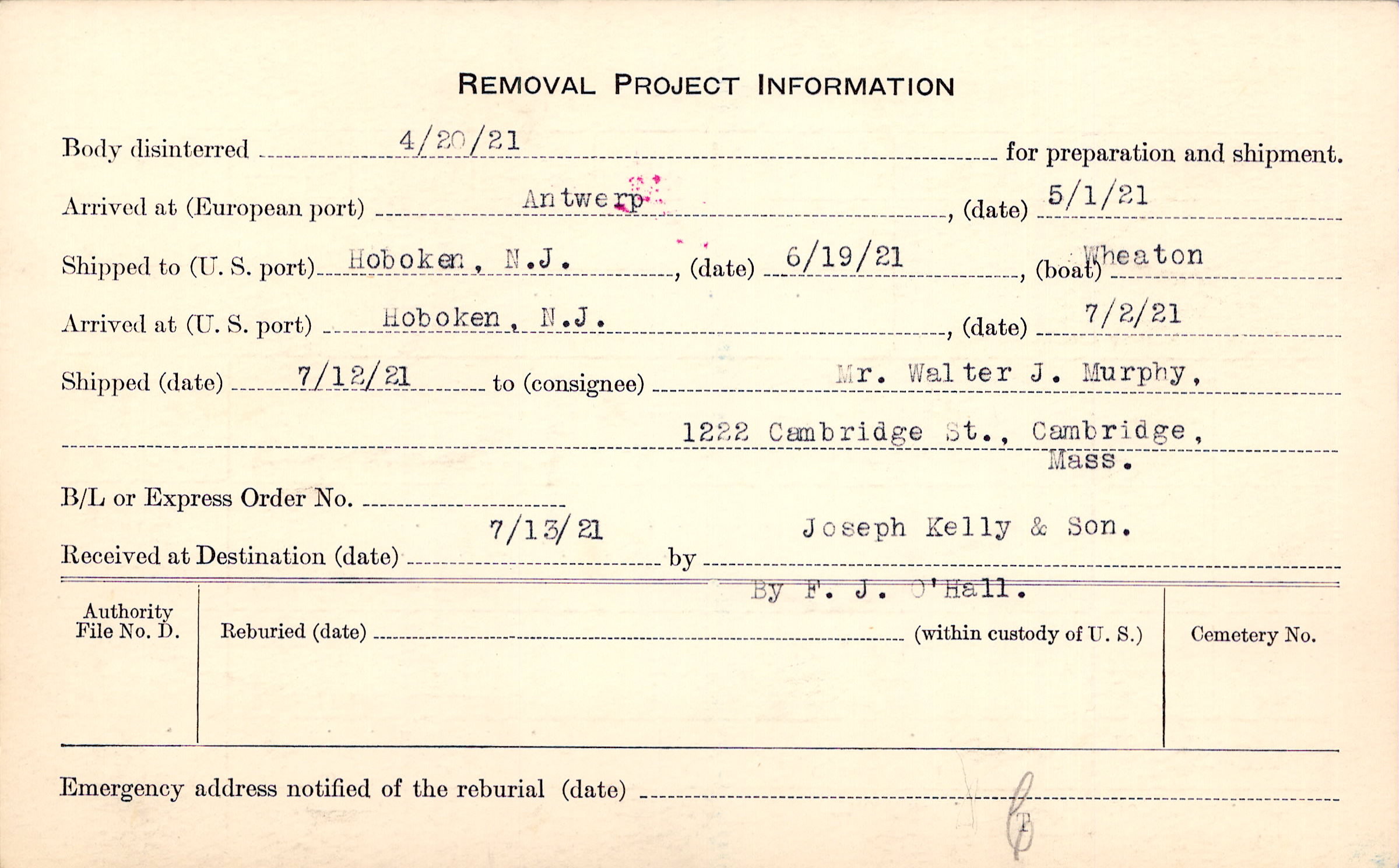 to Mr. Walter J. Murphy, 1222 Cambridge St., Cambridge, Mass.