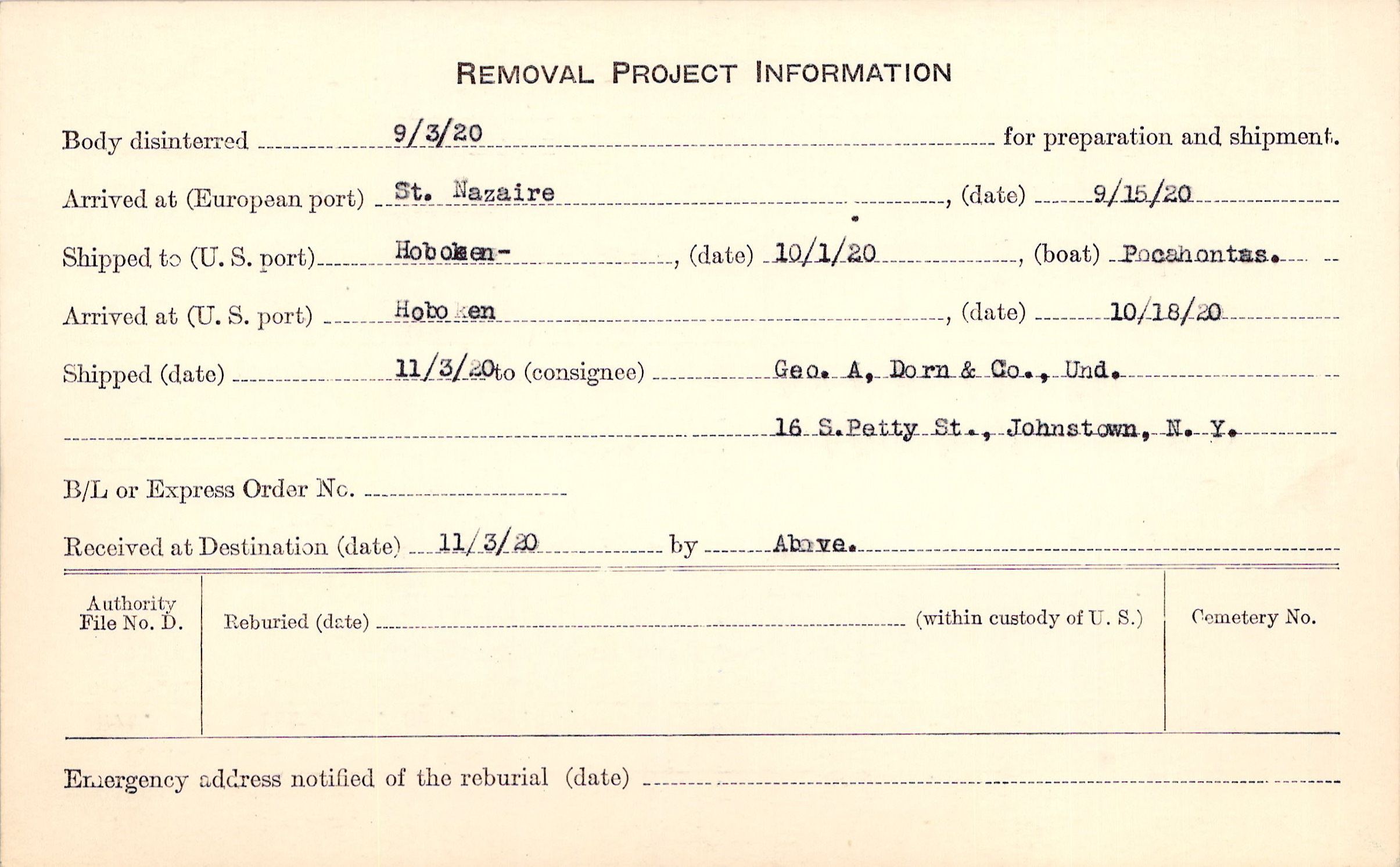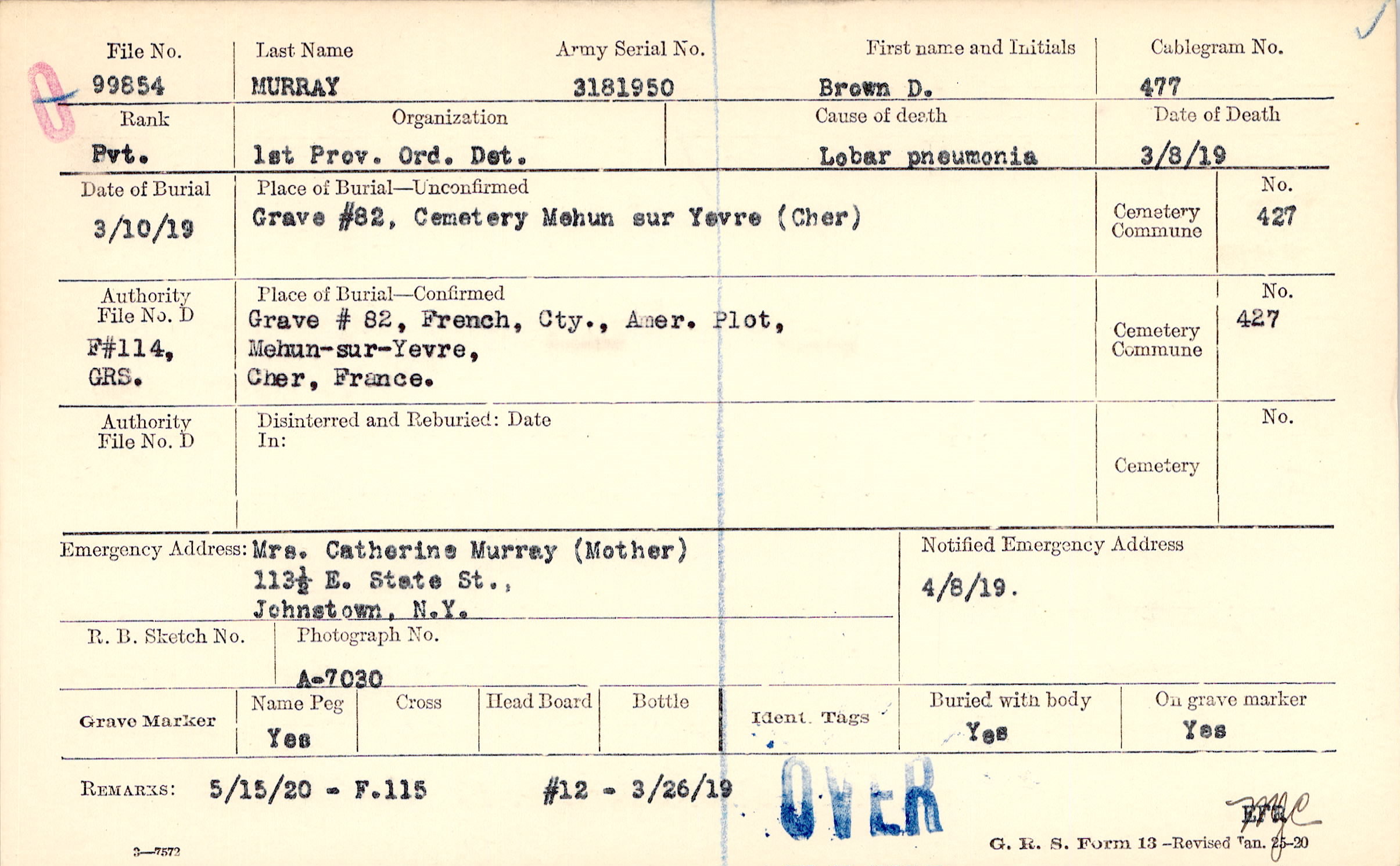 Mrs. Catherine Murray (Mother), 113½ E. State St . , Johnstown, N. Y.